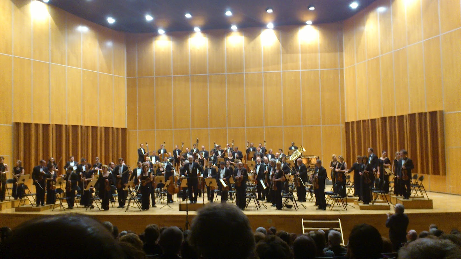 La presentación del Coro Femenino «Aurum» fue un acontecimiento al que pudimos asistir en primera persona. Elena sigue el camino emprendido hace años con «Los Peques» y el nivel alcanzado le permite afrontar unas obras contemporáneas que llevarán próximos concursos internacionales: el motete O quam suavis est (Pierre Villette), la complicada y difícil Virita criosa (Thomas Jennefelt) cantada no ya con gusto sino con delicadeza a la que nunca es ajena su directora, Ave Maris Stella (Eva Ugalde) y Lafa-lafa (Javi Busto), nueva demostración de la calidad de estas chicas que lograron interpretar esta maravilla coral del «doctor», uno de los enamorados del proyecto que en esta obra utiliza recursos como los hoquetus, polirritmias, disonancias endiabladas y unos reguladores extremos que aumentan la dificultad que precisamente resulta el motor y objetivo de la excelencia coral.
