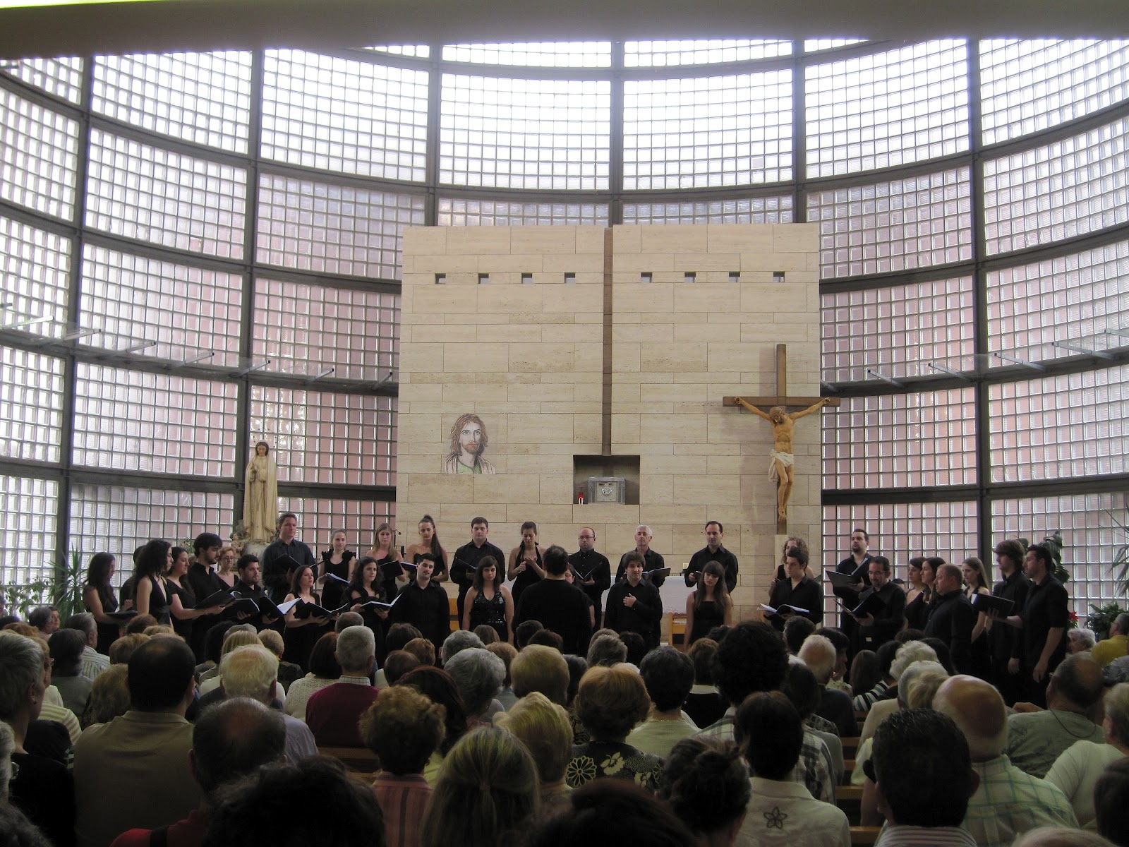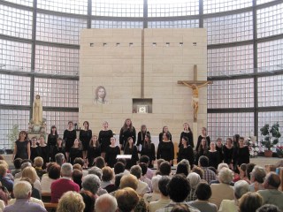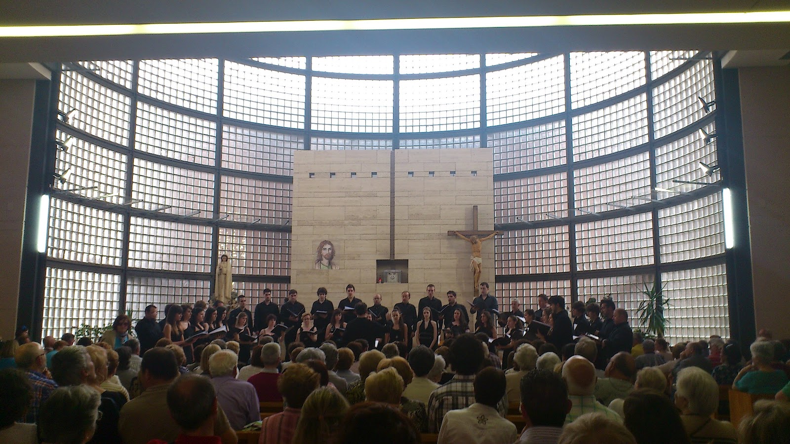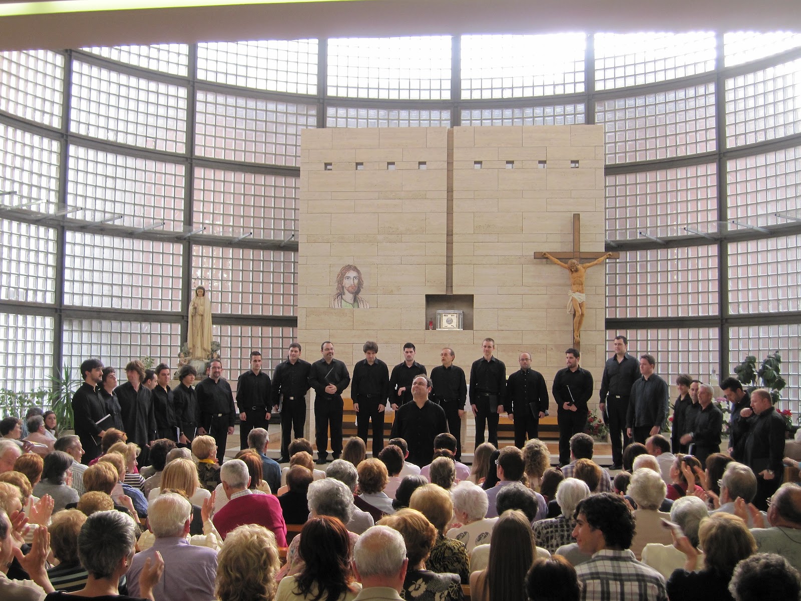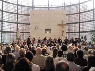 La Iglesia de Nuestra Señora de Fátima estaba rebosante y con un calor que hacía difícil mantener la concentración, pero estos cantantes pueden con todo. «Los Peques del León de Oro» con Elena Rosso siguen siendo una gozada de coro infantil, afinados, disciplinados, trabajadores, con matices tan amplios que sobrecogen, y capaces de afrontar temas realmente difíciles. Nos cantaron Pater noster (Julio Domínguez), Sanctus (Dante Andreo), Zai itxoiten (Javier Busto) incluyendo el lenguaje guestual, Ascendis Deus (Jackson Berkey) para finalizar con esa perla de la música coral desde la óptica juvenil que es Vox Tronica (Tobin Stokes), llevando toda la carga emocional de la electrónica y el baile a un nivel de excelencia que no me extraña asombre a quien la escucha por vez primera, con coreografía incorporada que enriquece todavía más una obra sin texto pero llena de «electricidad vocal». A estas alturas del curso, «Los Peques» lo son de edad pero realmente adultos musicalmente y el orgullo de saber que el futuro ya está aquí.