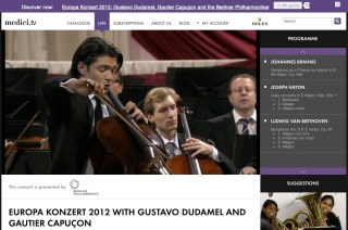 Martes 1 de mayo, 11:00 horas. Escuela Española de Equitación, Viena. Concierto de Europa 2012 de la Orquesta Filarmónica de Berlín, Gautier Capuçon (cello), Gustavo Dudamel (director). Obras de Brahms, Haydn y Beethoven. Retransmisión en directo desde RTVE (La2) y diferido en Medici.TV el día 2 de mayo, 20:00 horas. Director de la emisión: Henning Kasten.