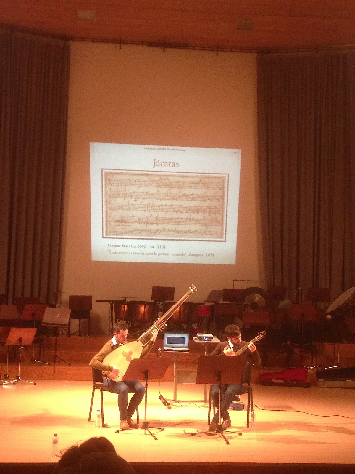 Tras la presentación a cargo del violinista segundo coprincipal Pedro Ordieres, se celebró el sorteo para el orden de interpretación de las tres obras finalistas, que paso a la difícil tarea de describir la música según las notas tomadas en la primera escucha, algo que no suelo hacer pero dado el carácter de estreno y la posibilidad de votación popular, tuve el humor de ir reflejando mis impresiones según iba escuchando, dándole un poco de forma para hacerlo más legible. Las tres composiciones utilizaron la misma plantilla orquestal con mayor o menor percusión y de duraciones similares (en torno a los 15 minutos y un poco más escuchada en último lugar) siguiendo las bases del concurso.