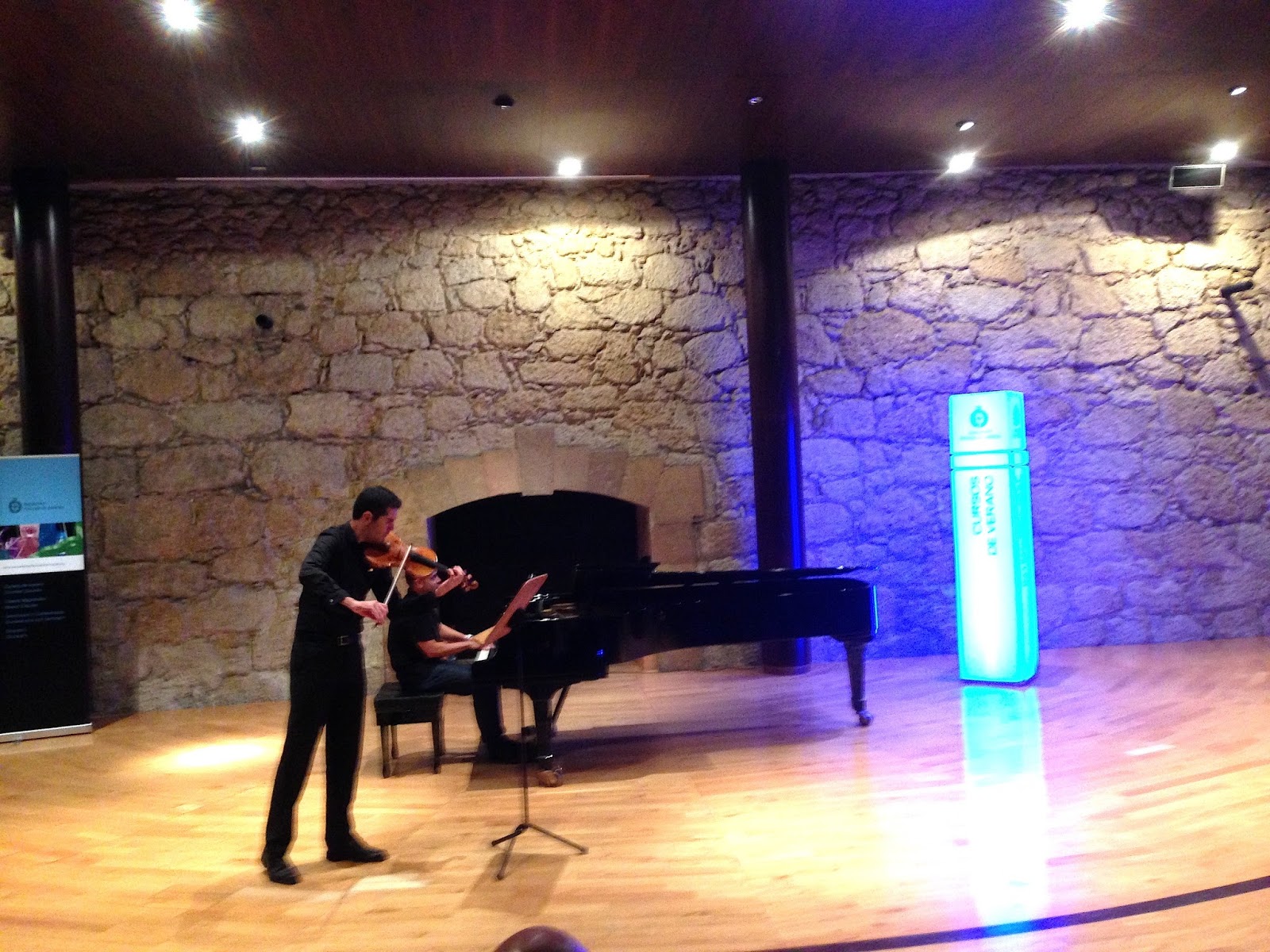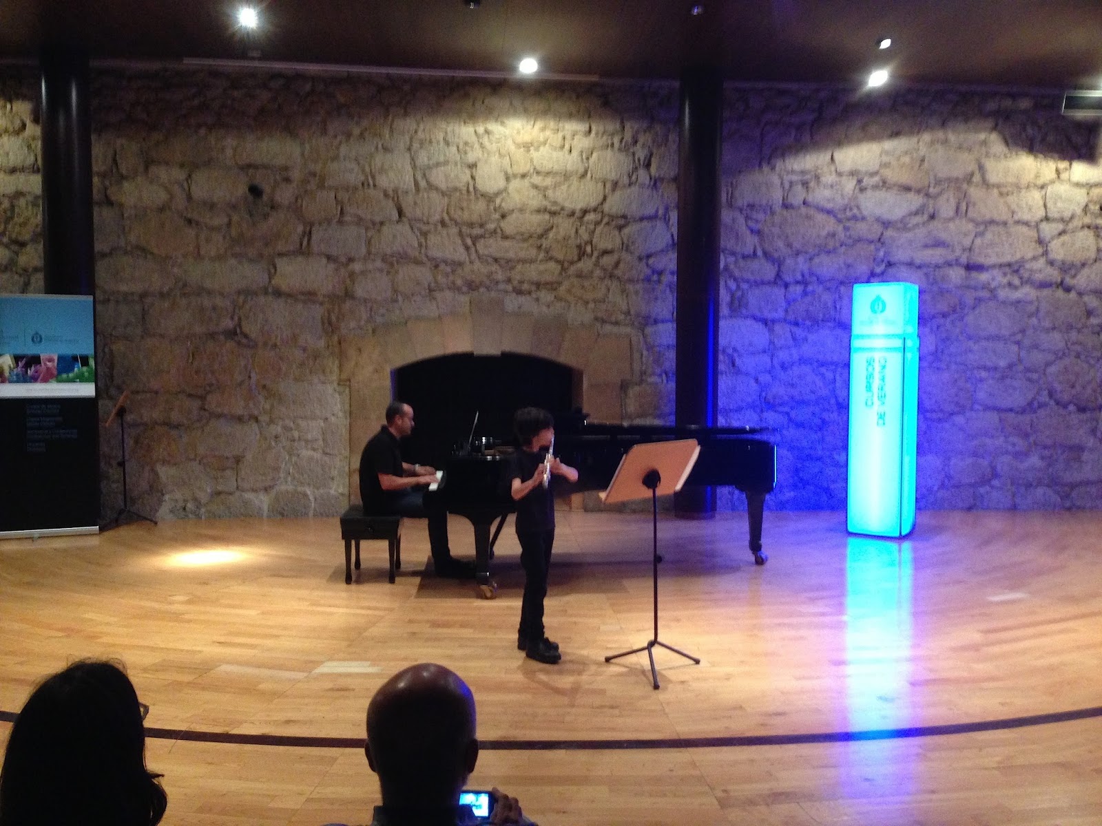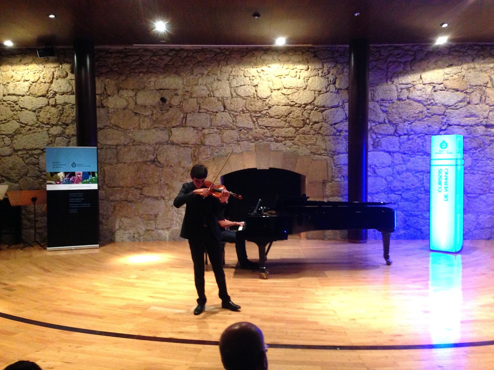 La séptima posición dentro del programa le correspondió a todo un joven vetarano del violín y alumno de la profesora Lara Lev en este curso: Ignacio Rodríguez Martínez de Aguirre que se atrevió nada menos que con la Introductione and Tarantella de Sarasate, palabras mayores de la literatura violinísitica no ya por la técnica totalmente virtuosa que mi admirado «Don Ignacio» sigue trabajando dentro y fuera de España, sino por el poso interpretativo que pide desde la delicada introducción hasta la movida danza italiana, pudiendo decir que su madurez es aplastante, autoexigencia y afán por mejorar cada día (la búsqueda de la limpieza en los endiablados pasajes y armónicos escritos por el pamplonica sucesor de Paganini) desde un sentido musical digno de admiración, bien secundado por Óscar Camacho que comparte protagonismo en esta partitura. Un placer ver su progresión tanto en el arco como en una mano izquierda que crece como su estatura.