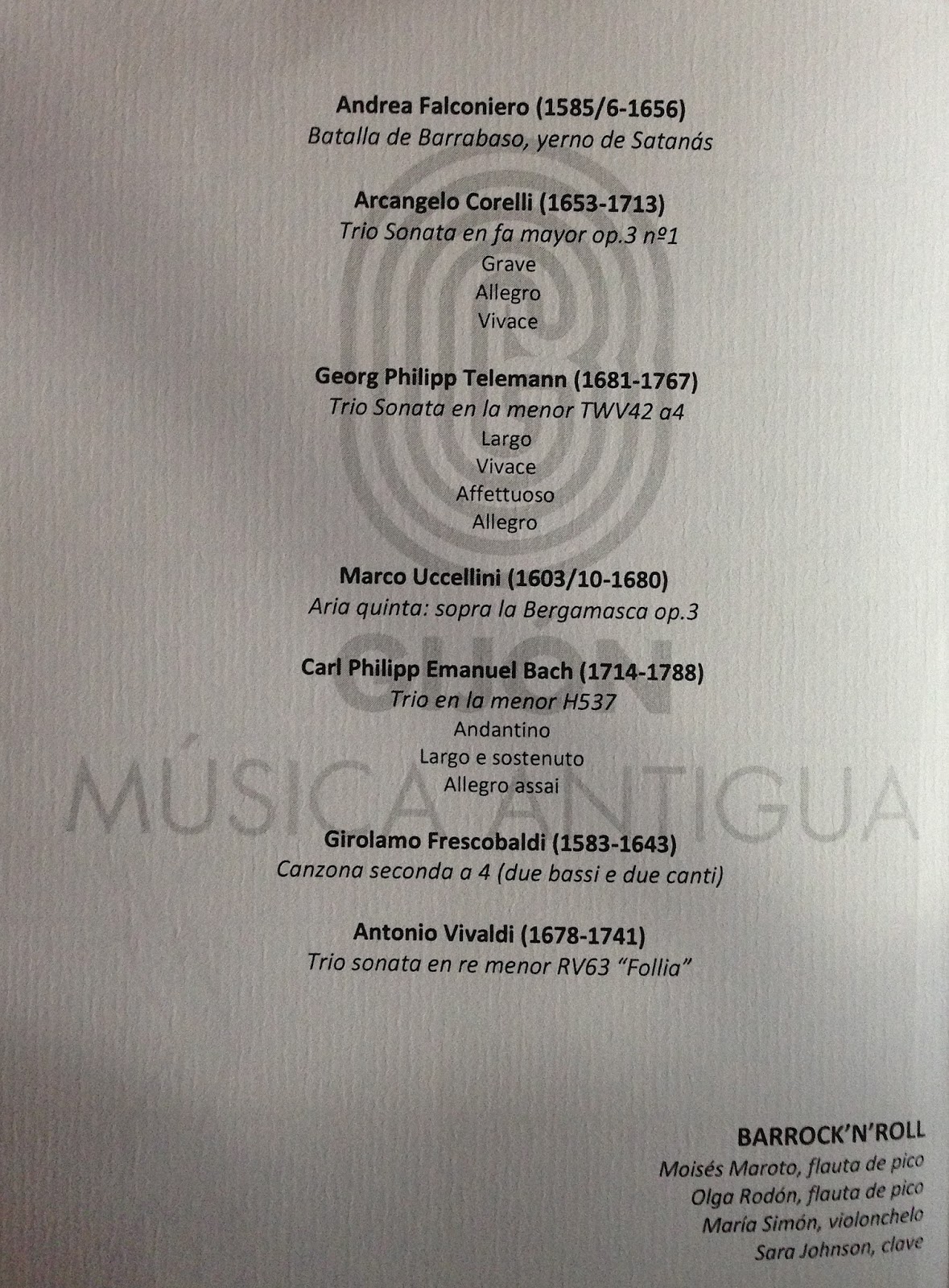y en quinto lugar un trío con los dos fagotes Jorge Galán Corral y Ana Martín más el oboe de Irene Roser Espert en el tercer movimiento de la Sonata en re menor (G. F. Haendel),