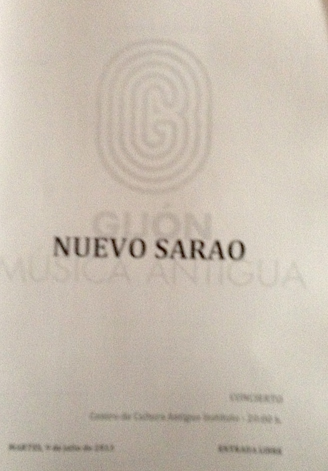 Martes 9 de julio, 20:00 horas. Gijón Música Antigua 2013. XVI Festival de Música Antigua, Centro de Cultura «Antiguo Instituto». Nuevo Sarao: El Sarao de la Chacona, «Libro segundo de tonos y villancicos a una, dos, tres y quatro voces» (Roma, 1624).