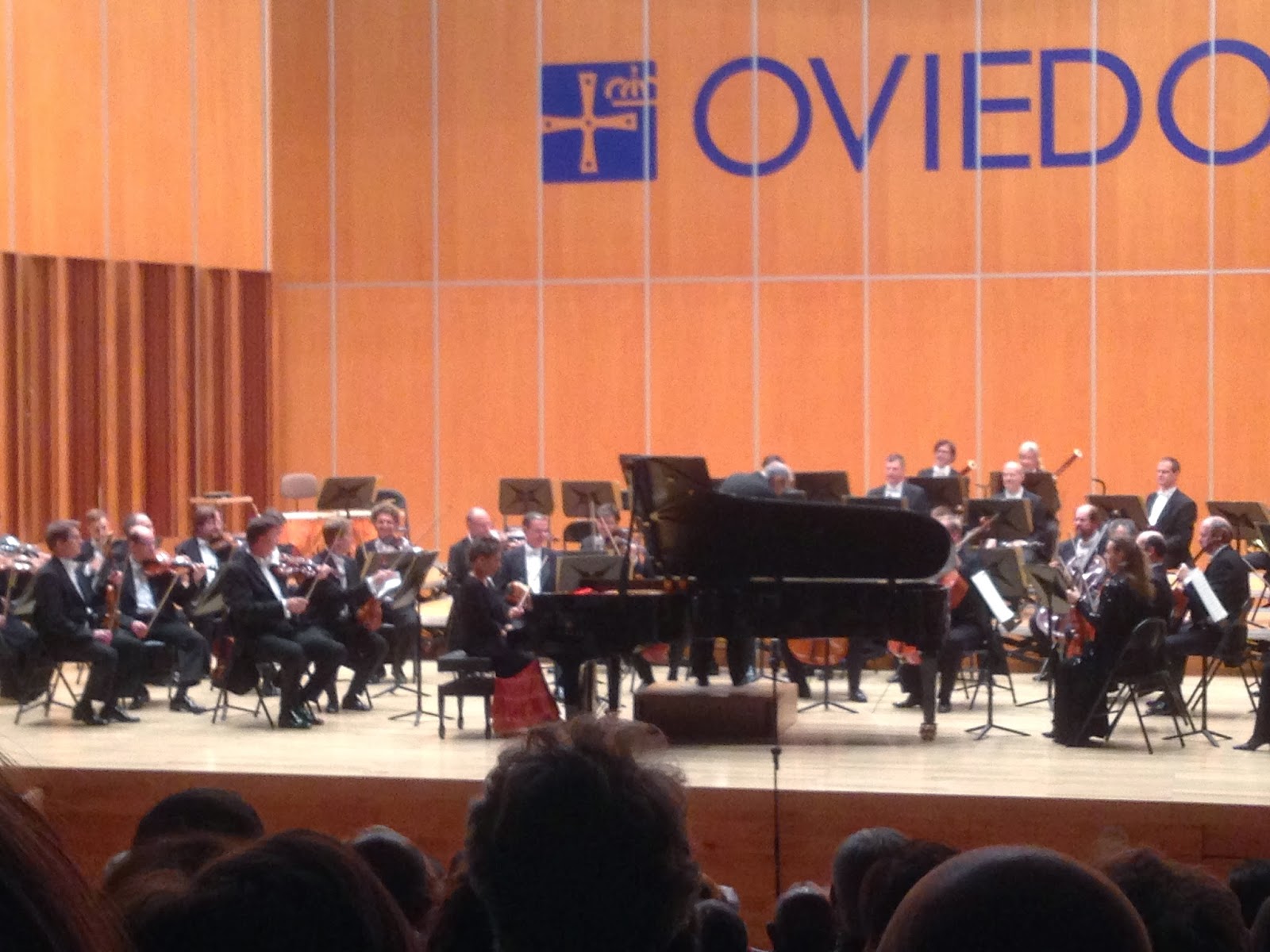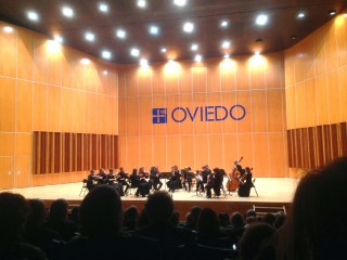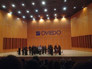 De la OSPA añadir la profesionalidad más que reconocida de todas sus secciones con pasajes auténticamente somníferos de notas tenidas, y otros doblando voces; la madera en la línea de excelencia tímbrica para unos pentagramas más bien planos y dificultades similares a las voces (la flauta solista arrancó notas graves dificilísimas), las trompas y sobre todo trompetas dentro y fuera del foso de lo más jazzísticas con sordina, interviniendo con armonizaciones que me recordaron al mejor Gil Evans, junto a la percusión compleja que me despertaba de la modorra, tanto la titular asturiana como los invitados, destacando la parte electrónica que redondea ese ambiente de musical americano contrapuesto a las guitarras flamencas lo suficientemente amplificadas para protagonizar los mejores momentos de este espectáculo que me hizo derramar metafóricamente cataratas (más que fuente) de lágrimas.