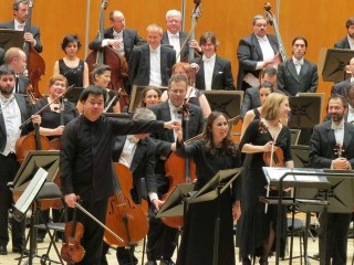 Sin menospreciar a una orquesta que se comportó y la buena concertación de la señora Carneiro, lo del virtuoso chino es para recordar y así lo entendimos todos. La versión que nos regaló -como el día antes en Avilés- de Recuerdos de la Alhambra de Tárrega espero volver a escucharla cuando Radio Clásica emita el concierto, visionar y repetir, con un arco inigualable, capaz de recrear los trémolos guitarrísticos y la melodía en esa joya de violín. Silencio de emoción y otro regalo «caprichoso» del demonio oriental de Paganini el endiablado. Eternidad infernal y placeres nada pecaminosos.