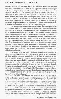 La orquesta al completo comenzó con la Sinfonía nº 6 en fa mayor, op. 13/16 más plena que la primera, tres movimientos donde el Moderato central sonó preciso, silencios dramáticos subrayando las largas notas tenidas del par de trompas (oboe en la original) en tonalidad menor antes del arrollador Presto final que los jóvenes salmantinos con Onofri al frente solventaron contagiando alegría «preparando los ánimos de los mozartianos para el misterio de su broma» parafraseando al profesor García-Bernalt.