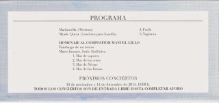 Más que escribir de las obras, pues dejo el programa escaneado, esta vez quiero dedicarme a los instrumentistas que individualmente pudieron lucirse y también en conjunto, pese a una combinación tímbrica algo similar en cuanto a cuerdas punteadas pero sin estridencias, siempre rica en los formatos y presencias desde una dirección discreta aunque medida al detalle incluso en las improvisaciones.