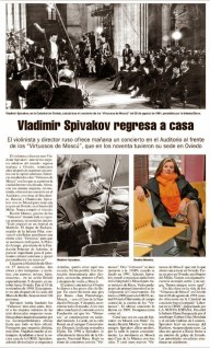 Todo un viaje en el tiempo nos trae el concierto de Spivakov con “Los Virtuosos de Moscú”, recordando que hace 25 años decidieron venirse a nuestra tierra asturiana para hacerla el centro de operaciones y las maletas cargadas de proyectos, algunas promesas incumplidas y avatares dignos de recordar en otro momento, pero con una semilla bien plantada que ha dado sus frutos docentes en otros músicos, muchísimos estudiantes y centenares de aficionados, siendo Asturias tierra privilegiada de haberlos tenido entre nosotros, volviendo a esta su segunda casa cuando su agenda lo permite. Tomemos pues esta velada de febrero como una nueva lección de música de cámara desde el barroco hasta el siglo XX, con unos maestros universalmente reconocidos que harán las delicias de todos por la variedad y magnífica elección de autores y obras que paso a comentar.