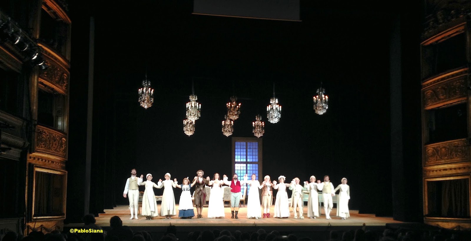 Maravillosa elección de las voces por parte del músico de Lucca afincado en Madrid para un libro de Ramón de la Cruz que respira lirismo en su totalidad sin olvidar el carácter cómico de enredos amorosos con cierta crítica: cuatro personajes femeninos con dos sopranos (para las hermanas) y dos mezzos (el aya y una ossia soprano para la criada), y cuatro masculinos de los que dos son cantantes, barítono el maestro de música, y tenor el amante secreto, más dos actores para el fanfarrón marqués y el padre de las chicas. Partitura agradecida en general para voces y orquesta, arias, dúos, tercetos y concertantes fáciles de seguir, melodías incluso pegadizas, sin olvidar la dificultad del texto hablado que en el primer acto ocupa más que la propia música, bien resuelta por todo el reparto y con una puesta en escena muy lograda en un decorado palaciego supongo similar al de la mecenas que encargó esta obra, Doña Faustina Téllez-Girón, condesa-duquesa viuda de Benavente.