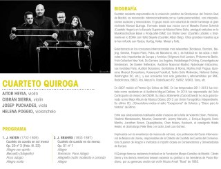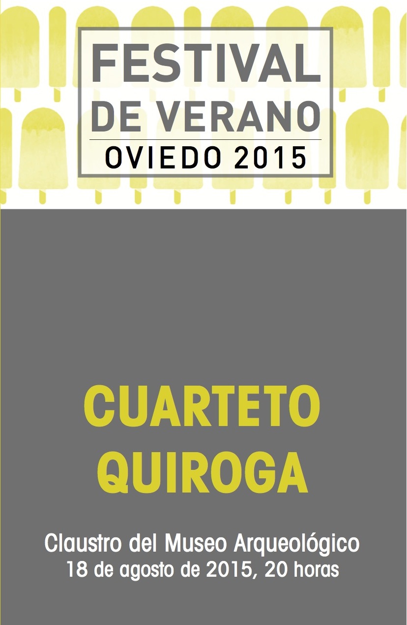Martes 18 de agosto, 20:00 horas. Festival de Verano Oviedo 2015, Claustro del Museo Arqueológico de Asturias: Cuarteto Quiroga: Aitor Hevia (violín), Cibrán Sierra (violín), Josep Puchades (viola), Helena Poggio (celo). Obras de Haydn y Brahms. Entrada libre.
