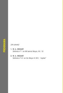 Concierto monográfico de Mozart pudiendo escuchar su primera y última sinfonía en un recorrido diríamos que fluvial, del Salz al Danubio saltando hasta el Támesis con 24 años de distancia: la Sinfonía nº 1 en mi bemol mayor, KV 16 (1764) escrita en el barrio londinense de Chelsea con tan solo 8 años de edad pero ya con su sello inconfundible que será cual marca eterna, terrenal y universal, que se elevará hasta el universo, al planeta de luz de la Sinfonía nº 41 en do mayor, KV 551, “Júpiter” (1788), todo el firmamento sinfónico en apenas una hora de música.