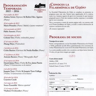 En esta temporada 2015-16 serán varios intérpretes los que pasen por el escenario del coliseo gijonés, llegando desde Córdoba el joven Pablo Amorós con un programa del que habló el día anterior invitado por el Taller de Músicos que mantiene colaboración con la sociedad local, acercando al público los concertistas que dan a conocer esos detalles ayudando a comprender y entender mejor su profesión. Parte de los asistentes aplaudían el poder escuchar obras de música española, que tristemente sigue teniendo más reconocimiento fuera de nuestra tierra como el propio Amorós ha hecho en EE.UU. por citar una de sus giras. Puede ser coincidencia que los dos elegidos para hoy falleciesen fuera de España.