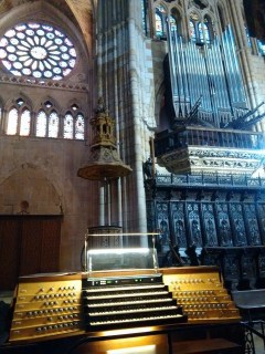 El programa Bach de León presentaba verdaderas «salvajadas» que no están al alcance de cualquier organista, y debo destacar que las dificultades van más allá de la cuestión técnica, con una elección de registros adecuados que hubiera necesitado de muchas horas (las que Raúl Prieto no tiene) para investigar las infinitas posibilidades tímbricas que atesora «el bicho» de Klais. Apostó por los prefijados de fábrica aunque no desmerecieron en ninguna obra, con especial esmero en el pedalero (incluyendo la propina del conocido estudio atribuido a «Mein Gott» sólo garabateado en una portada de cantata como bien explicó a los asistentes) y con un frío que convirtió esta ruta del organista no como una escalera al cielo sino autopista al infierno gélido capaz de inmovilizar las manos del mejor conductor.
