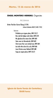 Martes 15 de marzo, 20:00 horas. Iglesia de Santo Tomás de Cantorbery, XXXIX Semana de Música Religiosa de Avilés: Ángel Montero Herrero (órgano). Obras de Bach.