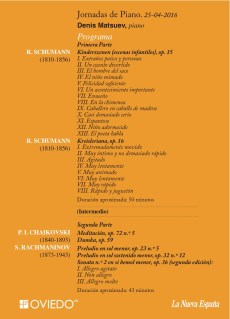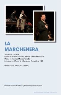 Lunes 30 de mayo, 20:00 horas. Teatro Campoamor, Oviedo. Zarzuela: XXIII Festival de Teatro Lírico Español: La Marchenera (música de F. Moreno Torroba, libreto de Ricardo González Toro y Fernando Luque), producción del Teatro de la Zarzuela. Equipo artístico: dirección musical de Miguel Ángel Gómez Martínez al frente de la Oviedo Filarmonía, coro Capilla Polifónica «Ciudad de Oviedo»; dirección de escena y dramaturgia: Javier de Dios; iluminador: David J. Díaz. Entrada butaca: 38,50€ + 1 € de gestión (aunque Liberbank no actualiza los cajeros obligándonos a pasar por taquilla).