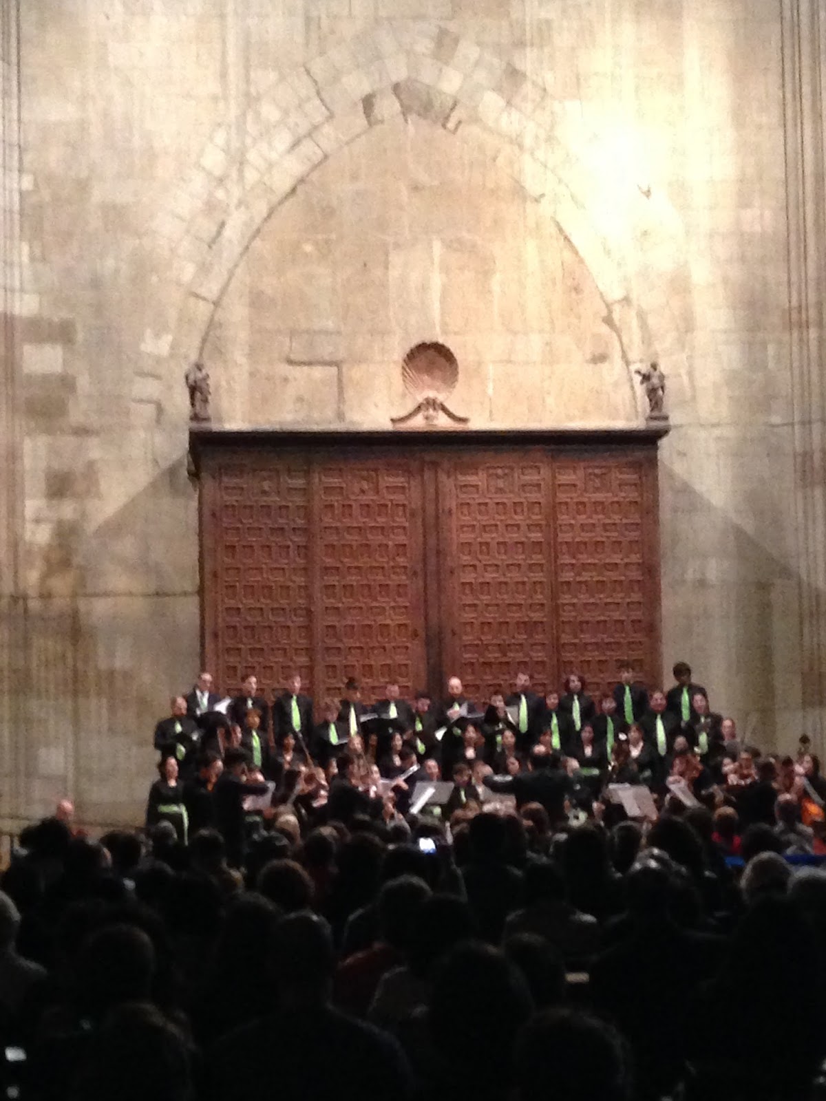 La joven orquesta tuvo algunos problemas de afinación, lógicos en parte por los cambios de temperatura y humedad pero pudimos volver a escucharla en el bis con mejor resultado, y sobre todo un coro capaz de imponer presencia sin necesidad de grandes volúmenes dada la emisión perfecta para conseguir el equilibrio y balances necesarios, con unos solistas que desconozco sus identidades pero igualmente dotados técnica y musicalmente para transmitir y «defender» una obra con mucha calidad. Aquí dejo otro de los vídeos subidos por «camaraurbanaleon» a YouTube© para que también lo disfruten mis lectores (que corresponde al bis final).