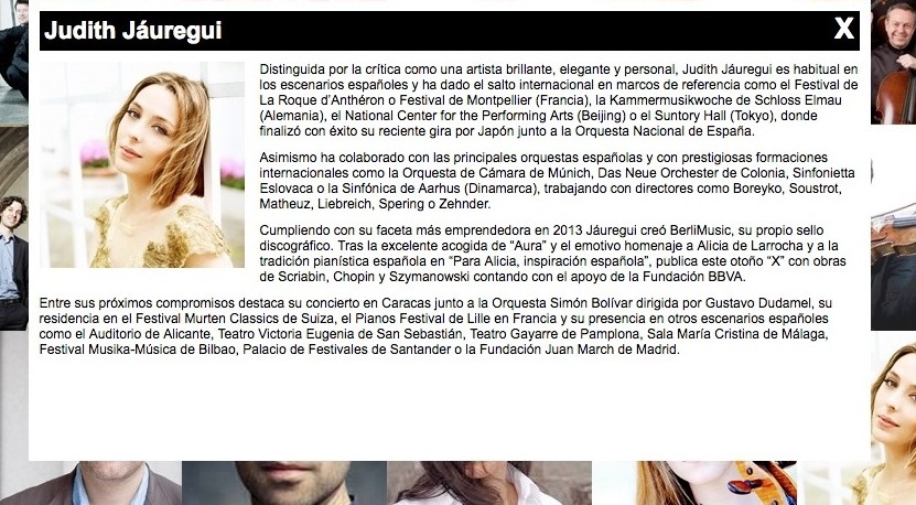 Tras una breve pausa volvía Judith Jáuregui en solitario para otro descubrimiento de Janáček, En la niebla, rememorando el estilo evolucionado de Chopin a Debussy (también lo recogen las notas que dejo al final del párrafo), el virtuosismo más el impresionismo de salón conjugando técnica y pasión en un idioma que se afianzará a lo largo del siglo XX e incluso me recordaba por momentos al mejor Albéniz parisino. «En la niebla da muestra de la catarsis en la que se encontraba (…) y evidencia cómo de la melancolía y la falta de autoestima nace una de sus obras más importantes, un ciclo en cuatro movimientos escrito en tonalidades «nebulosas» en las que encontramos la influencia del impresionismo de Debussy». Si la pianista donostiarra nos ha dejado hace poco su «éXtasis» espero que Janáček sea la siguiente grabación en su propio sello discográfico (Berlimusic), apostando por la belleza del dolor.