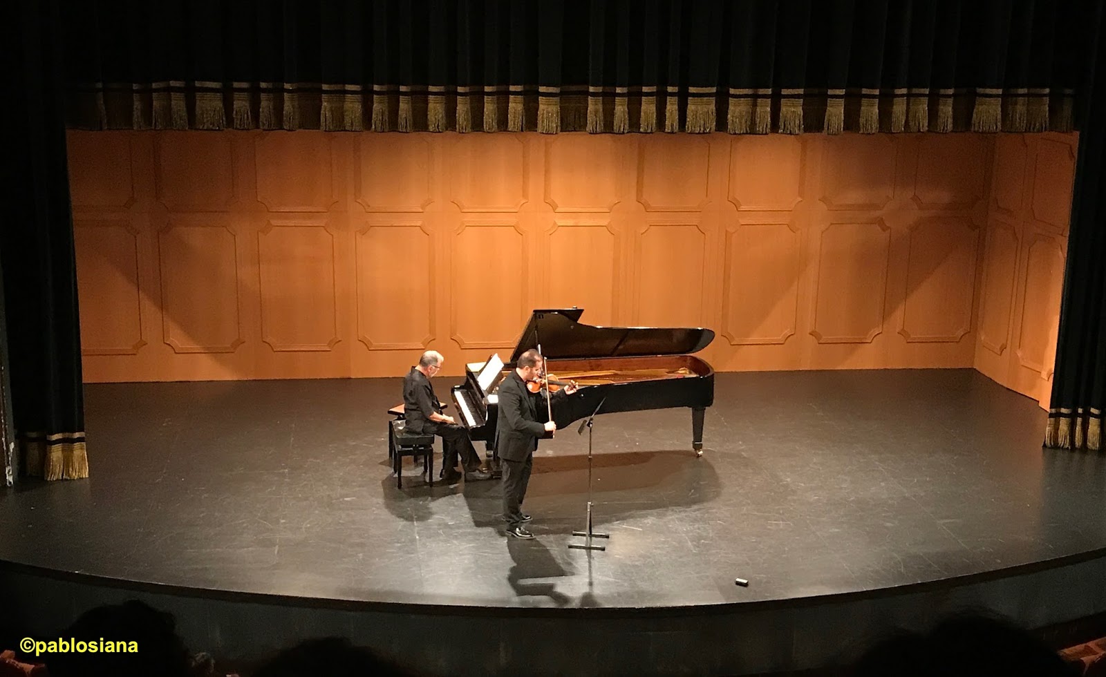 Otra partitura de las que se agradecen en estos conciertos es la Sonata en mi mayor, K. 304 (Mozart), con dos movimientos, el “Allegro” conocido -e incluso tarareado por mis vecinas de localidad- más el “Tempo di Menuetto”, que bisarían como propina, abriendo la segunda parte. Verdadera joya del Clasicismo que guarda la siempre engañosa sencillez del genio de Salzburgo con la profundidad que marcaría su inmensa producción. Escrita en París en 1778 cuando Mozart buscaba un trabajo estable y marcado por la muerte de su madre, es una de las más destacadas obras de cámara del joven Wolfgang. Independientemente de ser anterior o posterior al hecho luctuoso sí podemos apreciar cierto sentimiento de ausencia. Si se habla de «sencillez formal y profundidad expresiva de una forma que merece resaltarse dentro de su catálogo», diría que la sencillez estuvo en una ejecución sustentada en el conocimiento y el entendimiento, mientras la profundidad expresiva en la unidad sonora engrandecida por dinámicas y fraseos claros, complementarios para los dos movimientos expuestos por dos maestros para quienes la edad no es distancia sino un plus de madurez que redunda en la calidad interpretativa, dejándonos por partida doble ese “Menuetto” exquisito bisado como propina. Mozart siempre nos transmitirá alegría y colocarlo entre Brahms predispone oído y sentimientos antes de un final realmente poderoso.