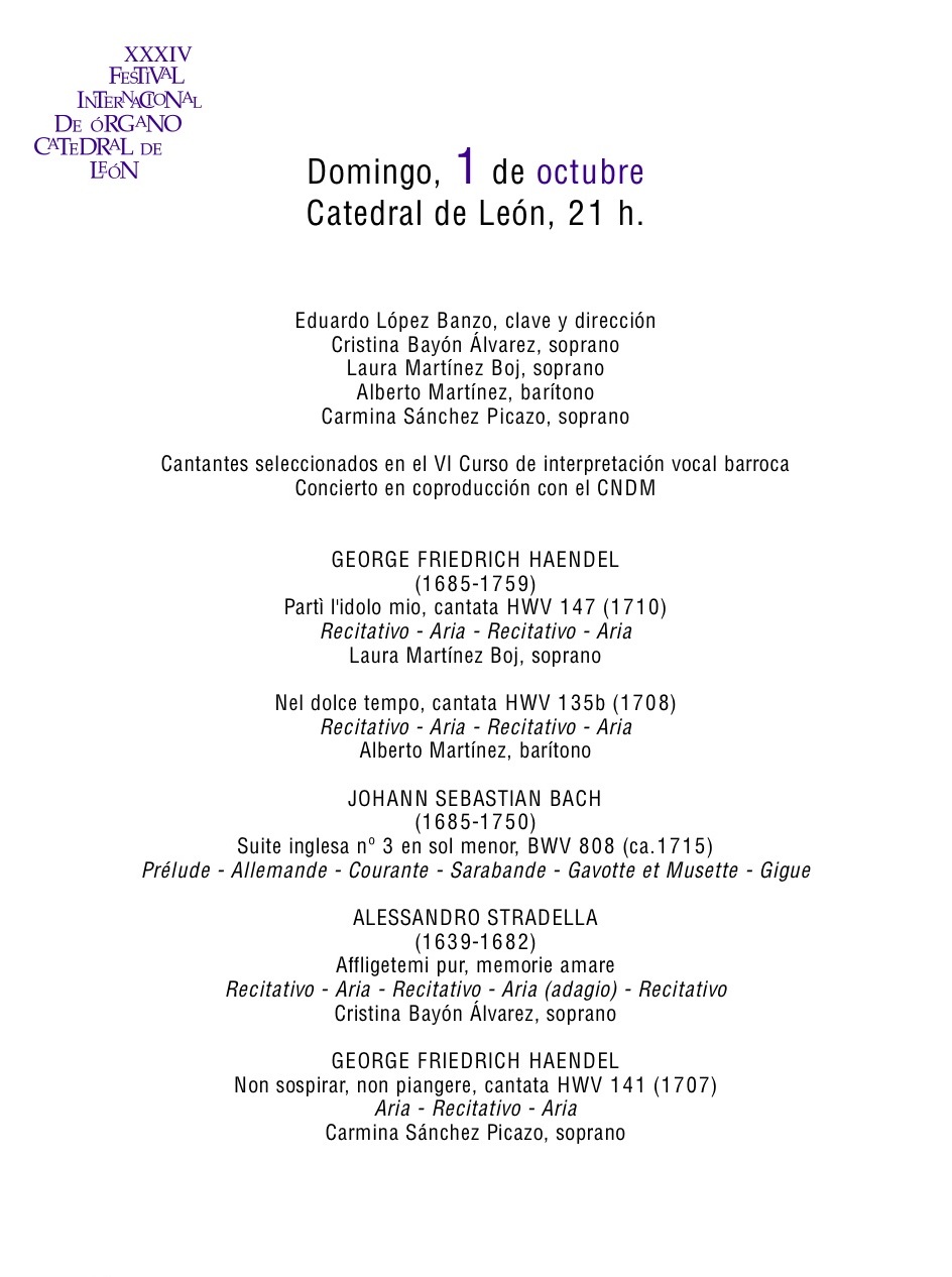 Oferta variada entre el francés Jean-Frey Rebel (1666-1747) y su delicada Les caracteres de la danse, el «cumpleañero» G. Ph. Telemann (1681-1767) con Trietti Melodici TWV42:d3, que hubiese resultado un auténtico placer, y el siempre adorado «prete rosso» Antonio Vivaldi (1678-1741) seguro en carta para todos los gustos, del que escuchamos la Sonata a tre «La follia» RV 63, ese toque de locura divina en formato original para dos violines y bajo continuo, que sonó en todo su esplendor y equilibrio de sabores merced a lo bien tratados que fueron los cuatro ingredientes en conjunto.