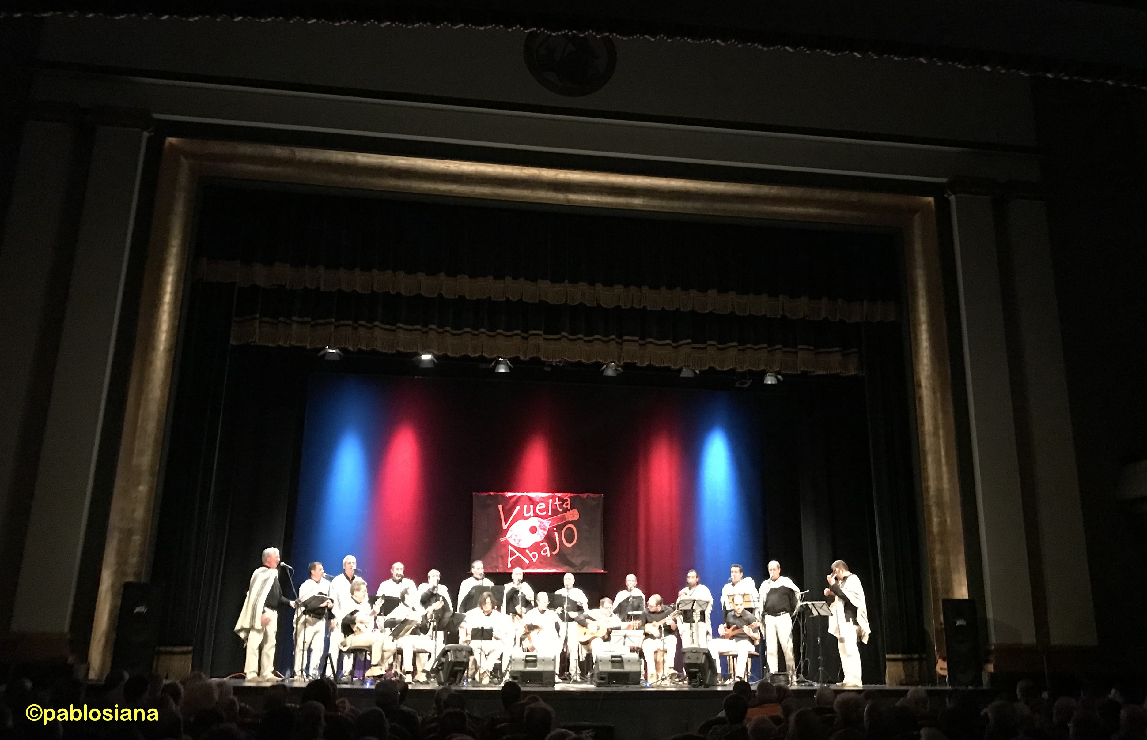 Tras el discurso de Don Ignacio Cuesta Areces, decano del ICA y la presentación de los invitados a un público fiel que llenó el patio de butacas del Filarmónica, mis amigos de Vuelta Abajo pasaron revista a los doce temas que integran un trabajo que debería estar a la venta en esta presentación, pero que problemas ajenos y lejanos lo traerán suponemos que los Reyes Magos.