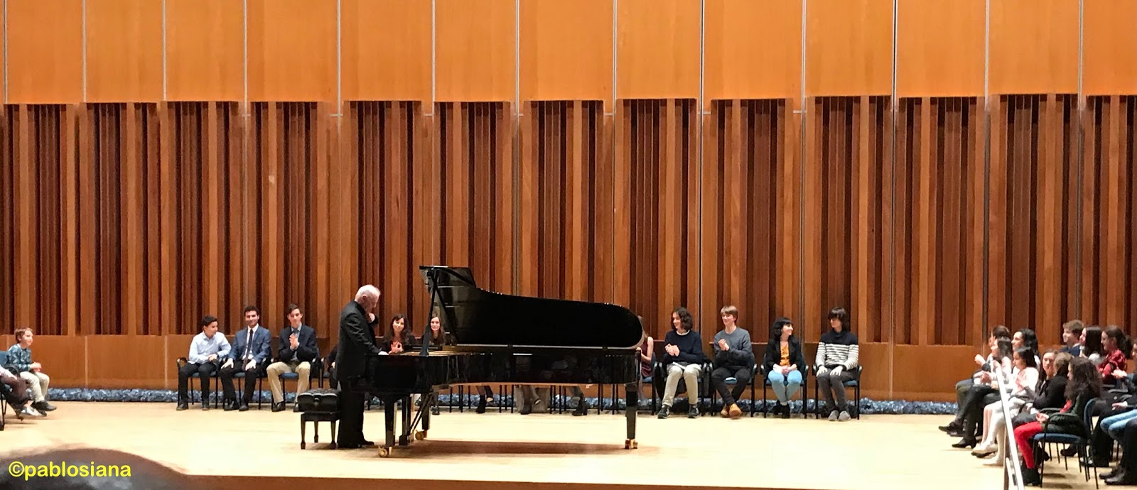 Alumnado muy aplicado de distinto nivel inicial que trajeron como examen final un variado programa para un público que volvió a dejar pequeño el Palacio de los Condes de Toreno. Con leves cambios en el orden de intervención o de las obras, iré desgranando con leves comentarios y fotos de estas voces que ya comienzan a sonar fuera de nuestra tierra.