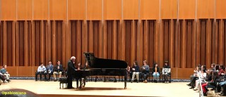 Punto y aparte merece la abogada y soprano pamplonesa Inés de Arvizu que nos dejó tres muestras de su capacidad, técnica sobrada para una voz que se muestra cómoda en partituras tan distintas como las que remató más que preparar en este curso, dada la dificultad de todas: Ach, ich fül’s, es ist verschwunden, la Pamina de «La flauta mágica» (Mozart), Come, now a roundel de «Sueño de una noche de verano» (Britten) y Piangerò la sorte mia de «Giulio Cesare» (Händel), tal vez buscando probar y acertar en la elección donde las sensaciones son siempre muy personales. Impecable en las tres me decanto por el inglés sentido y poco agradecido para tanta belleza condensada en esa página con un piano orquestal y la voz entendidos como un todo.