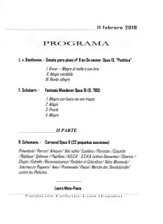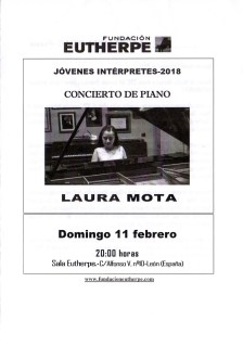 Domingo 11 de febrero, 20:00 horas. León, Fundación Eutherpe: Jóvenes intérpretes 2018. Laura Mota (piano). Obras de Beethoven, Schubert y Schumann.