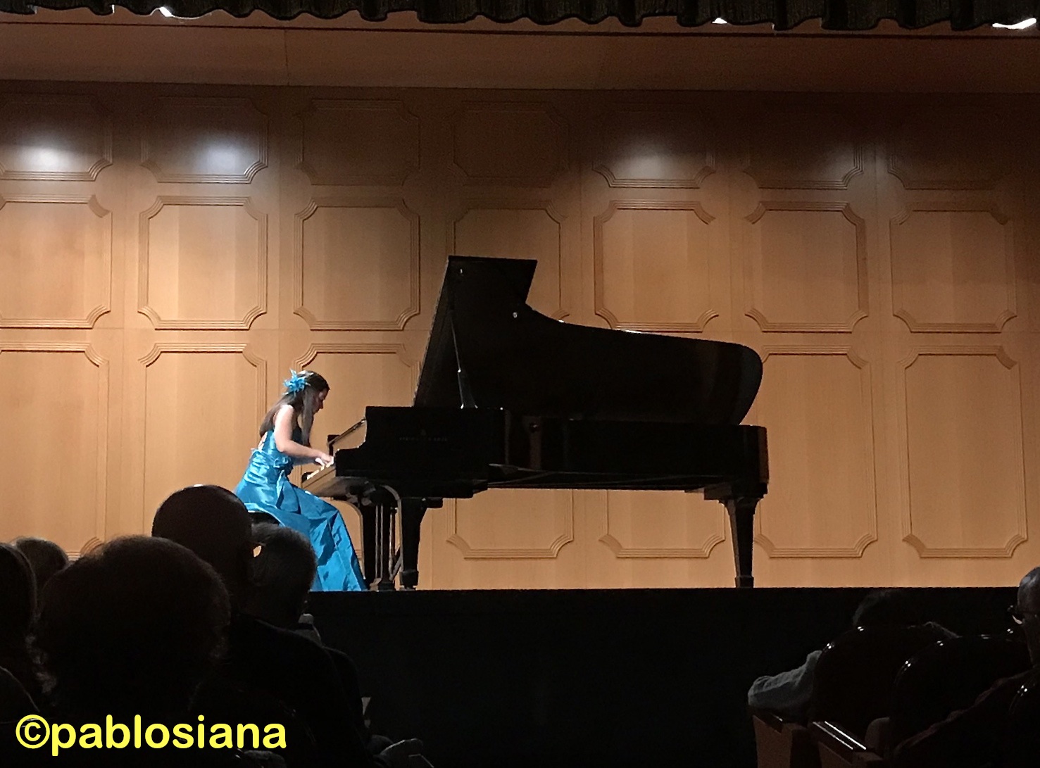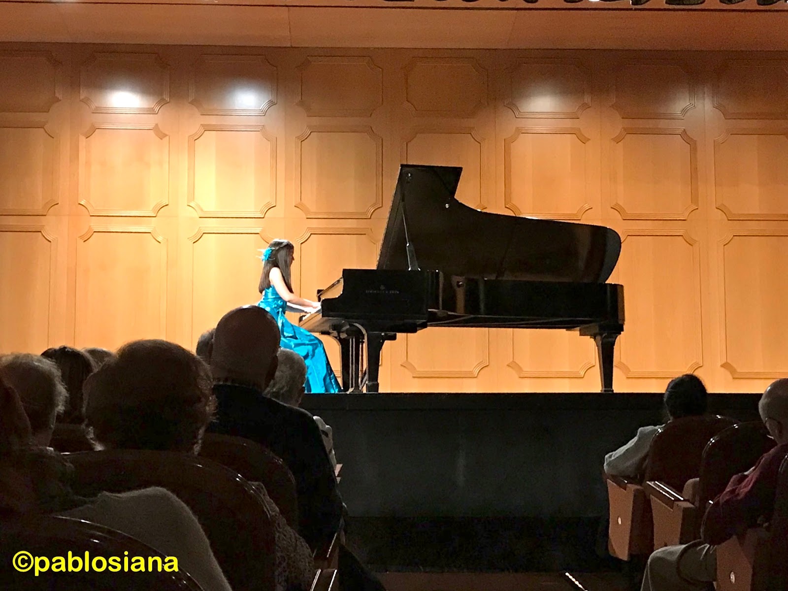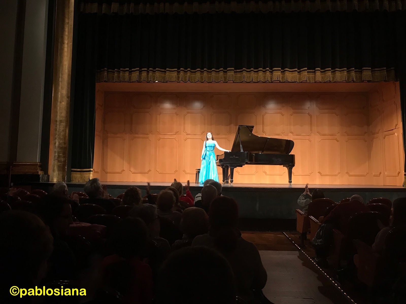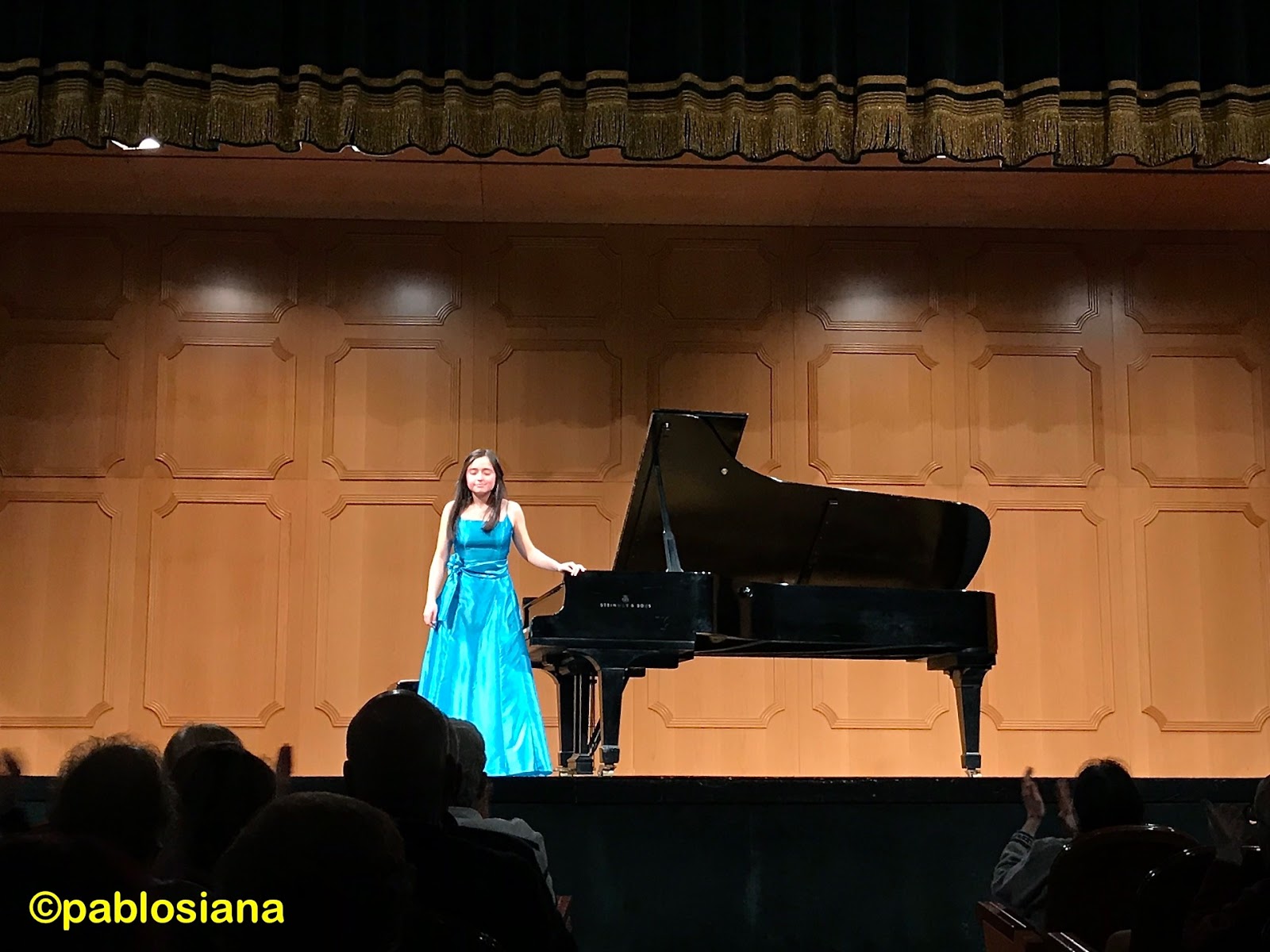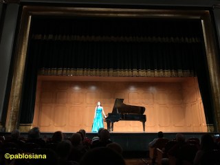 Si todo lo anterior ya tenía entidad para todo un concierto, todavía sonaría el Carnaval, op. 9 de Schumann en la segunda parte. Veintiún estampas breves y complejas, arrebatadoras y serenas, juegos de homenajes a Chopin y Paganini con mariposas y marchas filisteas además de esa literatura sonora inspirada en la “Comedia dell’Arte” pintada por Laura Mota con destreza y autoridad, con desparpajo y sentimiento sin artificios, interpretando y releyendo trazos, dinámicas, sonoridades y velocidades. La primera impresión fue la de conjugar técnicas distintas de acuarela, óleo y hasta mosaico por la variedad expositiva desde el piano, esa hondura de la que carecen muchos prodigios asiáticos que tienden a impactar con una técnica vacía de sentimientos. Laura Mota asombra no por lo que toca, pese a tener ya un amplísimo repertorio para quitar el hipo, sino por cómo, algo increíble para su edad que se transmuta al piano para emocionar con cualquier época y autor, tal es su acercamiento a las obras desde una seriedad atípica en estos tiempos. El Schumann carnavalesco brilló entre los mejores recuerdos de este teatro.