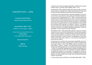 Unir fuerzas siempre es tarea ardua, más en la música, pero «la única Sexta, pese a la Pastoral» que diría Alban Berg, es esta “Trágica” ideal para pulsar el estado de dos formaciones que siguen convergiendo en su crecimiento, primero el Wagner del Campoamor con García Calvo, después este Mahler del Auditorio con González Bernardo, gracias a estas dos batutas españolas, preparadas, convencidas y defensoras de la calidad desde un trabajo serio que siempre contagia pasión. El carbayón ha crecido entre grandes y Mahler sigue siendo referente de una dilatada trayectoria a la que todavía le queda mucho recorrido tras su paso como titular de la OBC (Sinfónica de Barcelona y Nacional de Cataluña); volver a casa y reunir a OFIL y OSPA es un reto al alcance de pocos, no ya musical sino de liderazgo para aunar sentimientos, superar egos, romper asperezas y defender una obra de tanto calado como la sexta del bohemio. Si hace un año aplaudíamos el esfuerzo y magisterio de mi tocayo para alcanzar una sonoridad propia desde dos grandes orquestas, la reválida ha llegado este primer viernes de verano.