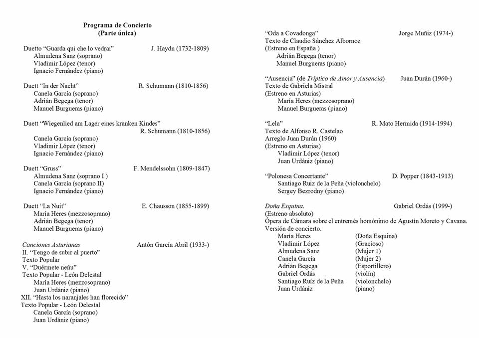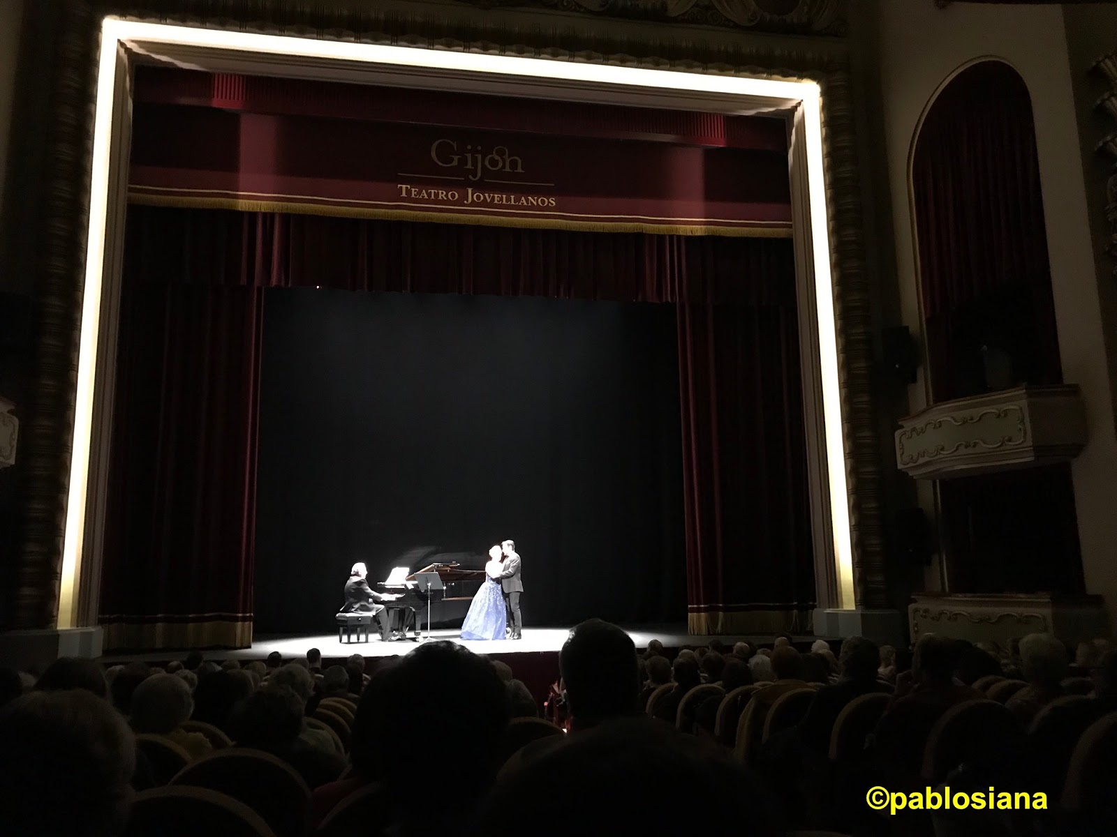 Puccini también regalo de lujo como no podía ser menos, el citado E lucevan le stelle (Mario Cavaradossi de Tosca), y O mio babbino caro (Lauretta de Gianni Schichi) que pusiese el Colón bonaerense a los pies de esta grande y el Jovellanos nos la trajo de vuelta a casa junto al tenor gijonés, dúo de artistas astures profetas también en su tierra.