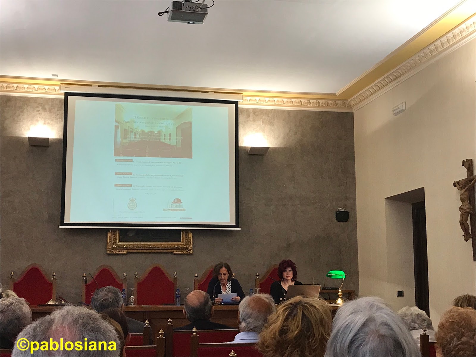 El martes 28 a las 19:30 horas continuaría este ciclo de tres conferencias, de nuevo con gran asistencia de público, a cargo de Mª Encina Cortizo, tándem perfecto con Sobrino, quien nos hablaría de «La ópera española: un patrimonio por descubrir», realmente para todo un libro, recordando que España es el país que más lírica ha producido y recordando cómo la «Leyenda Negra» de los británicos tan negativamente nos ha afectado e incluso resignándonos a lo largo de siglos tras nuestro poderío en el Renacimiento.