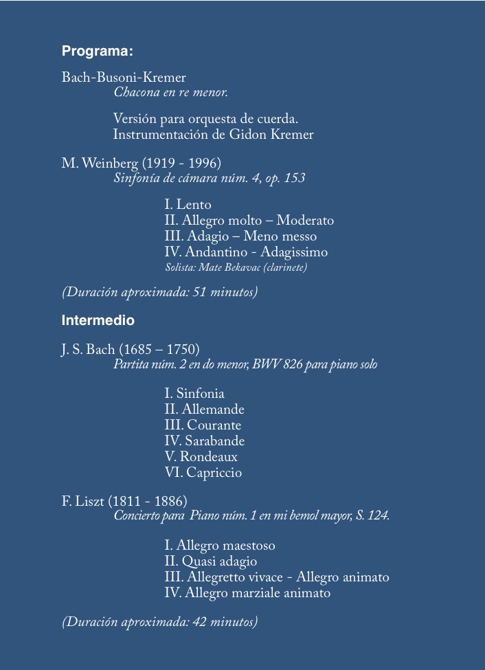 A veces los programas de los conciertos presentan conexiones «inexplicables» y en menos de cinco días volvíamos a escuchar el Concierto para piano y orquesta nº 1 en mi bemol mayor, S. 124 de Liszt aunque hayan sido dos mundos casi irreconciliables y apostando por colocar el concierto único en la segunda parte en vez de mantener el orden casi secular de obertura, concierto solista y sinfonía.