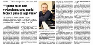 El Concierto para piano y orquesta nº 1 en mi bemol mayor, S. 124 de Liszt nos trajo de nuevo a Oviedo al ruso enamorado de España Denis Kozhukhin (también en OSPATV en un castellano muy correcto) para volver a disfrutar de esta inconmensurable página concertística en su versión sinfónica al completo –la de Argerich y la Kremerata fue con el arreglo para orquesta de cuerda de Gilles Colliard– que no resistió la comparación con el domingo pasado a pesar de contar con todo el arsenal orquestal. Demasiado cercana en el tiempo aunque el maestro Keast concertó a la perfección con Kozhukhin quien apostó desde un virtuosismo esperado y nunca vacío (como él mismo comentaba en la entrevista para La Nueva España que dejo al final de esta entrada), por el vigor, la potencia y la sonoridad plena, desde ese arranque en octavas fuerte y expansivo, el Quasi adagio que nos dejó los mejores momentos de la velada, para ir ganando hasta el final en buen equilibrio con una orquesta centrada, atenta a los detalles desde el podio y disfrutando en primera fila cada intervención del ruso.