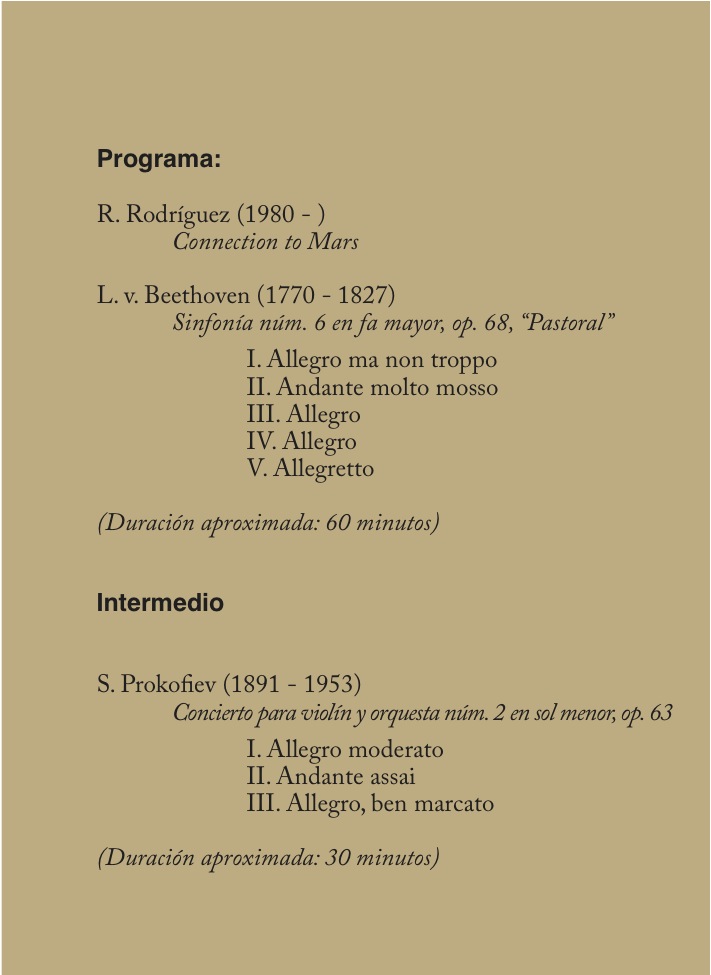 Es de agradecer escuchar la poco habitual obertura de Las criaturas de Prometeo, op. 43, que pone a prueba a cualquier orquesta y así parecieron tomárselo, «calentando dedos» toda la cuerda en un inicio impetuoso e inseguro donde se vio claramente que el objetivo primordial estaba en cuidar las sonoridades. Buen balance en todas las secciones de la formación asturiana pero sin la garra esperada para un Beethoven al que se le supone esa carga emocional llena de contrastes en esta obra de 1801 aún clásica en factura pero ya con el sello del genio de Bonn y cercana a la sinfonía que cerraría el concierto.