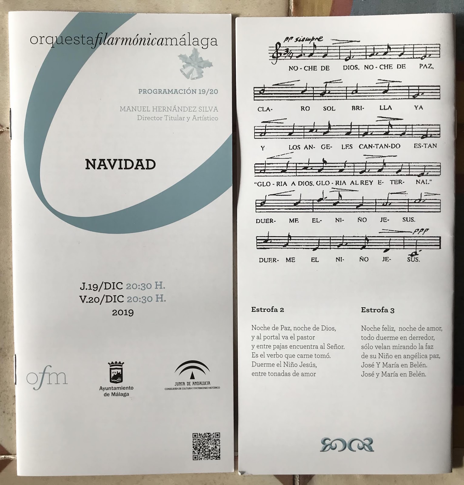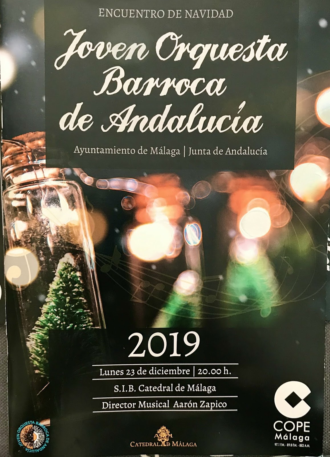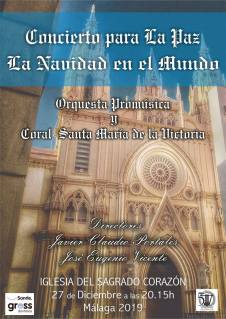 Viernes 27 de diciembre, 20:15 horas. Málaga, Iglesia del Sagrado Corazón: «Concierto para La Paz. La Navidad en el Mundo». Orquesta Promúsica y Coral Santa María de la Victoria. Directores: Javier Claudio Portales y José Eugenio Vicente.