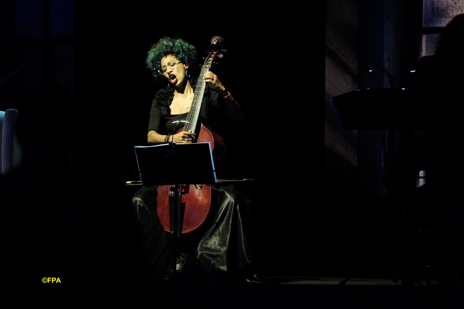 La luz tenue del taller con humo cual neblina onírica más los músicos adormecidos mientras de fondo sonaba una tormenta grabada ya nos preparaba para un inicio sorprendente: Lixsania Fernández con su viola de gamba cantando Yo soy la locura, la llegada a esta isla musical de la mano de una artista completa, despertándonos de un sueño que iría tomando forma.