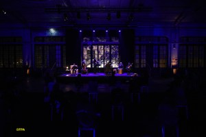 Aún con la neblina asturbritánica en el aire y tormentas instrumentales, los contrastes brillantes «marca de la casa» nos llevarían a escuchar la bellísima y animada The Virgin Queen – Bobbing Joe de John Playford, virtuosismo en la tecla de Aarón, en el violín casi whistle y más fiddle que nunca de Jorge, los rasgueos de Pablo empujando y reforzando el ritmo discreto y necesario de Pedro que haría de campanero para la siguiente declamación, con el tenor sentado al borde del escenario, la renacentista Al alva venid del Cancionero de Palacio, la profesionalidad de proyectar la voz en todas las direcciones para degustar estas melodías que impregnaron el aire frío que se olvidó con la calidez y calidad alrededor de una imaginada pinta de buena cerveza.