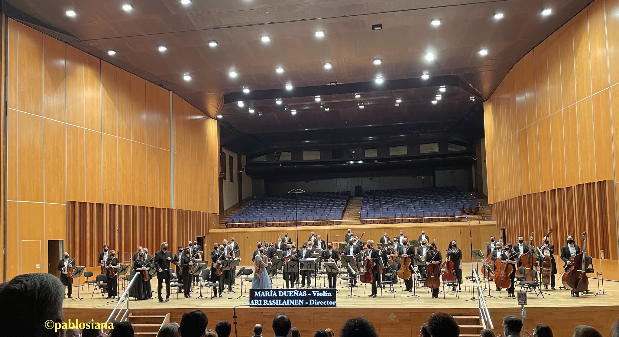 Intrigante inicio del Allegro moderato donde Dueñas ya mostró aplomo, seguridad y sonoridad, con una orquesta compacta en todas las secciones, equilibrada, atenta al detalle, y la «nueva acústica» de la sala principal que sigue descubriendo las «notas perdidas», mayor espacio entre músicos, más escenario y ampliación sonora al estar abierta la sala polivalente. El Guarnieri en manos de María Dueñas emocionaba en todos sus registros: graves de ensueño, armónicos pletóricos, dobles cuerdas manteniendo los trinos presentes y brillantes, con la OSPA redondeando un poderío y virtuosismo a la par que la solista, con Rasilainen dejando fluir la música indicando lo preciso con respuesta instantánea por parte de todos. Los primeros atriles no defraudan en sus intervenciones pero esta vez me quedo con todas las secciones porque la orquesta asturiana ha salido reforzada en esta pandemia. No hay titular ni concertino (esta vez el invitado fue el portugués Emanuel Salvador) pero tiene identidad propia, la misma que mostró en la primera cadenza la granadina. Qué placer y fascinación su fraseo, su agógica contagiada a todos, emociones a borbotones que cerrando los ojos parecían provenir de una larga vida al servicio de la música para despertar y admirar esa juventud desbordante. Balance orquestal siempre en su sitio, total compenetración con la solista y mismas sensaciones, caminando de la mano en este primer movimiento que no da tregua y una conclusión de exactitud germana pudiendo escuchar esos segundos posteriores donde el sonido sigue en la sala. En el Adagio di molto la calidad y calidez siguieron de la mano como debe ser, los clarinetes arrancando y marcando sentimiento con su prolongación en el violín de Dueñas acunado por un colchón de texturas únicas, la conjunción de metales y cuerda tan lograda en la escritura de Sibelius que dejan flotando el sonido primoroso de esta solista andaluza. Cómo fue entresacando Rasilainen la fuerza orquestal en todas sus dinámicas sin oscurecer nunca el protagonismo violinístico, ese maridaje y punto de encuentro tan difícil de alcanzar pero que cuando se logra nos depara movimientos como este segundo del concierto. Y el Allegro, ma non tanto de aires majestuosos, rítmicamente vibrante, explosión tímbrica del violín con una pulsión mantenida por Rasilainen llevando a la OSPA al disfrute global, el gozo musical de hacer música compartiendo intenciones, transmitiendo seguridad desde un buen hacer por parte de todos que trajo lo mejor de este concierto para el recuerdo.
