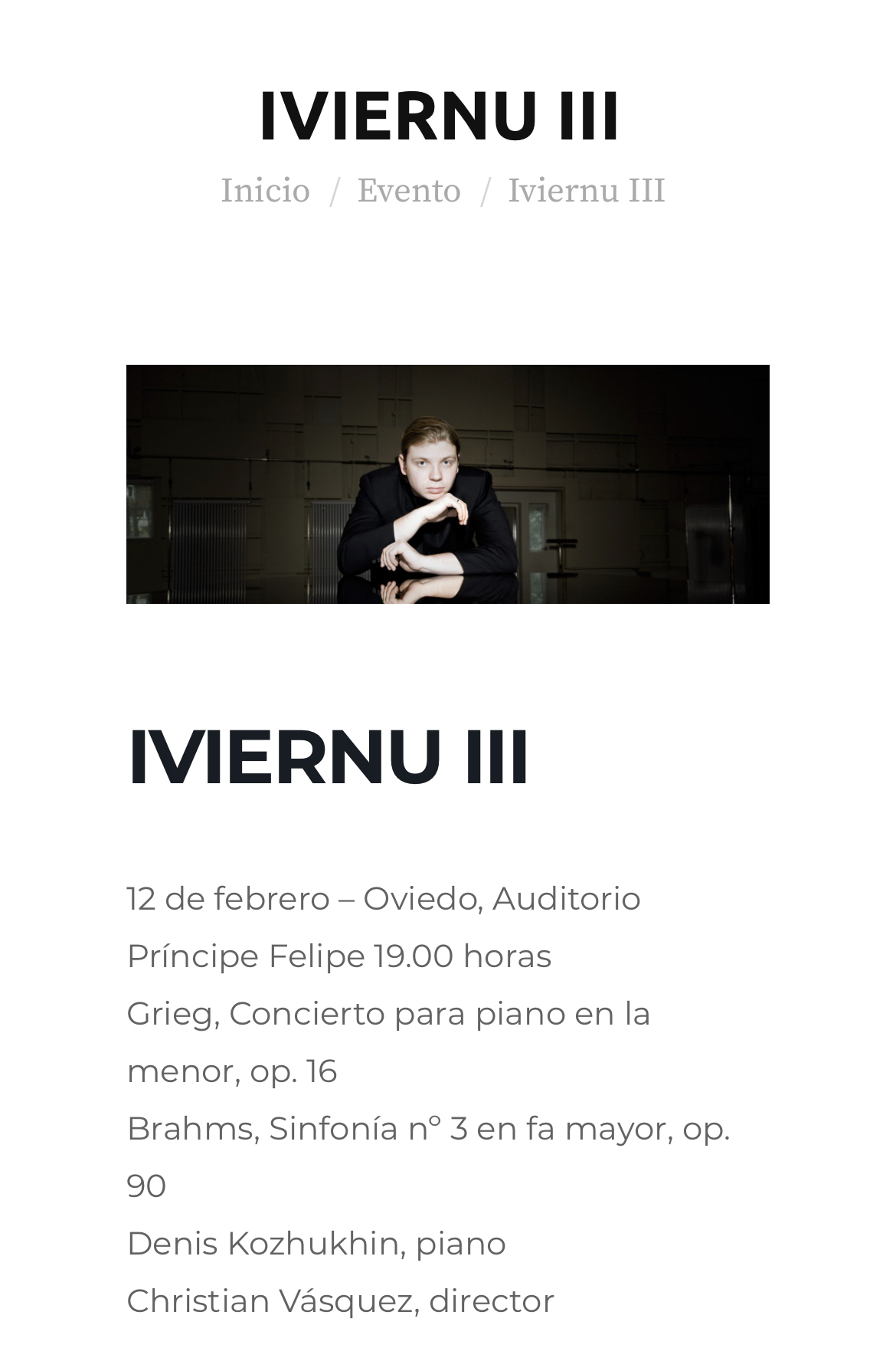 Sábado 27 de febrero, 19:00 horas. Auditorio de Oviedo, Jornadas de Piano «Luis G. Iberni»: Grigory Sokolov (piano). Obras de Chopin y Rajmaninov. Entrada butaca: 24 €.