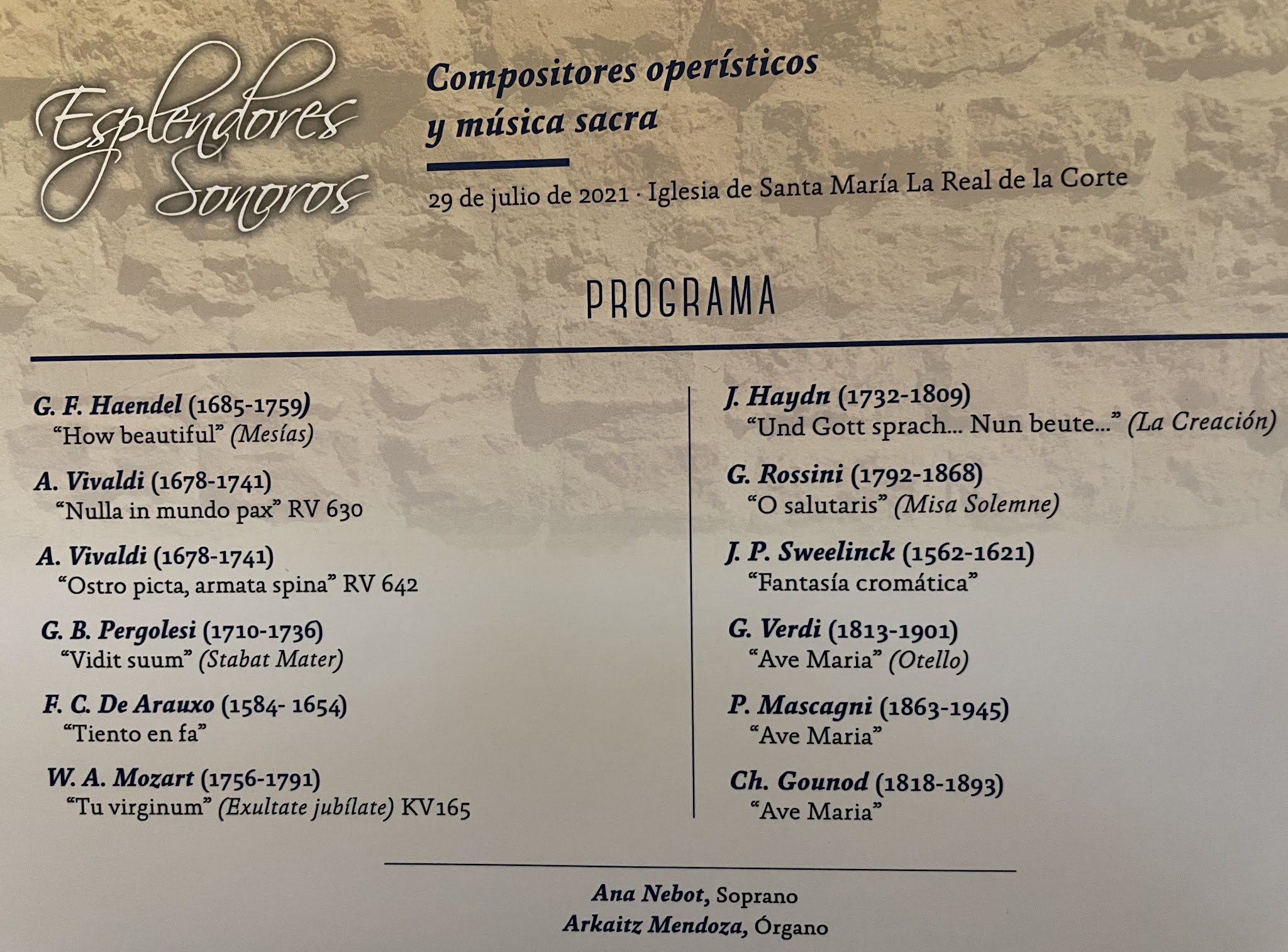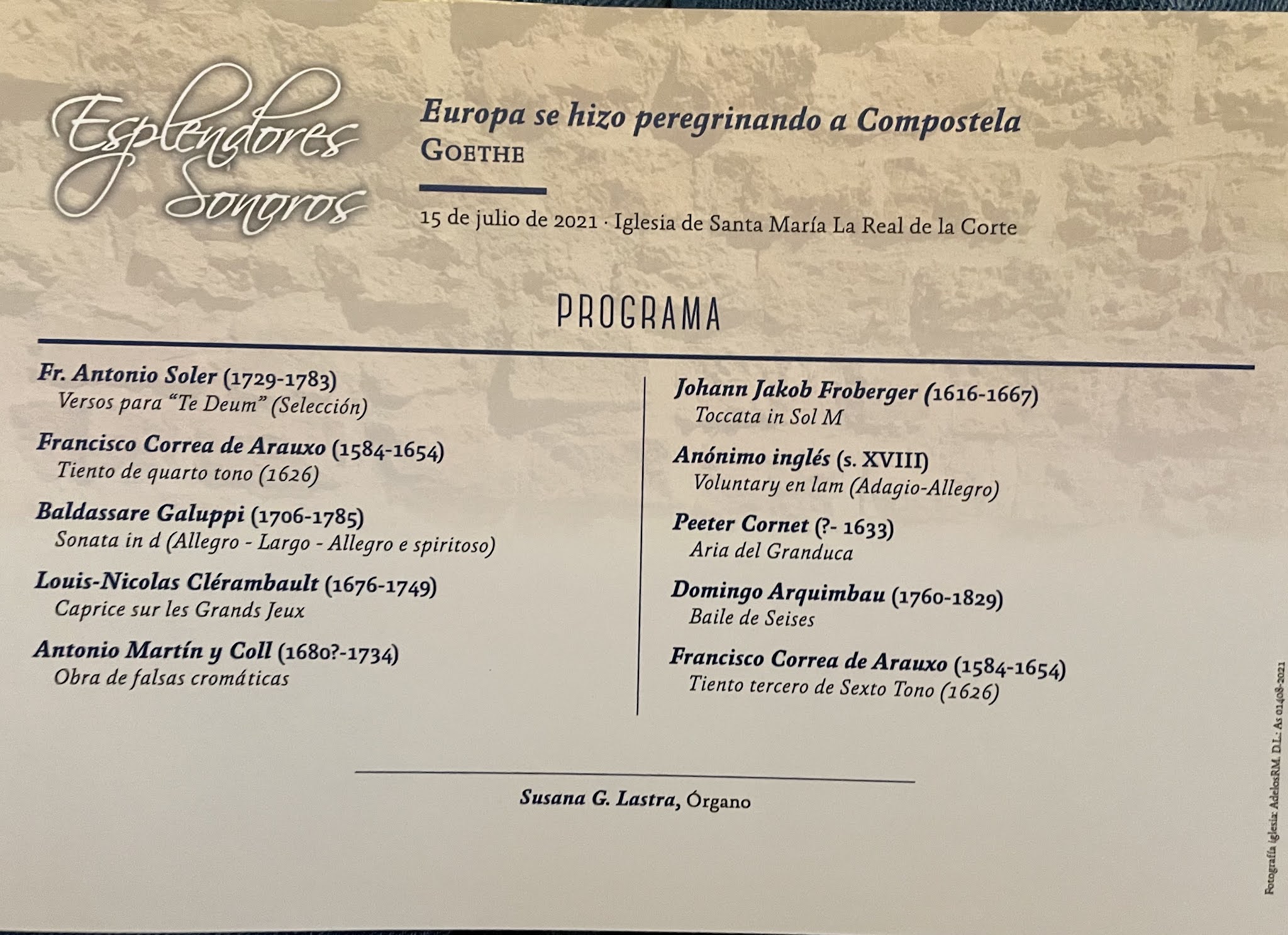 (1729-1783), el padre catalán cuya Sonata de Clarines sacó lengüetería y trompetas al aire de Valdediós combinando registros variados plenamente acertados aunque no siempre limpios al oído.