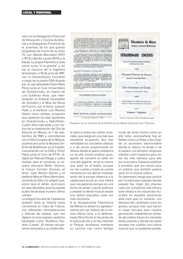 David Álvarez destacaría algunas figuras como la violinista Janine Jansen con el afamado y aclamado Klaus Mäkelä dirigiendo la Real Orquesta del Concertgebouw de Ámsterdam (de las pocas que quedaban por visitar Oviedo), la presencia de la OFil como pilar de los conciertos así como el apoyo que siempre se ha tenido a artistas asturianos de talla internacional. Avanzó la novedad para esta temporada de un programa pedagógico pendiente de cerrar y que se clausurará con un gran musical, reivindicando como ya es casi obligada la etiqueta («hastag») para Oviedo de #capitalidadmusical, con el agradecimiento a todo el equipo de la FMC pasando ya el micrófono a Cosme Marina, director artístico de la Fundación Musical Ciudad de Oviedo y sin olvidarse de Cristóbal Sánchez quien realizó el diseño gráfico de esta temporada.
