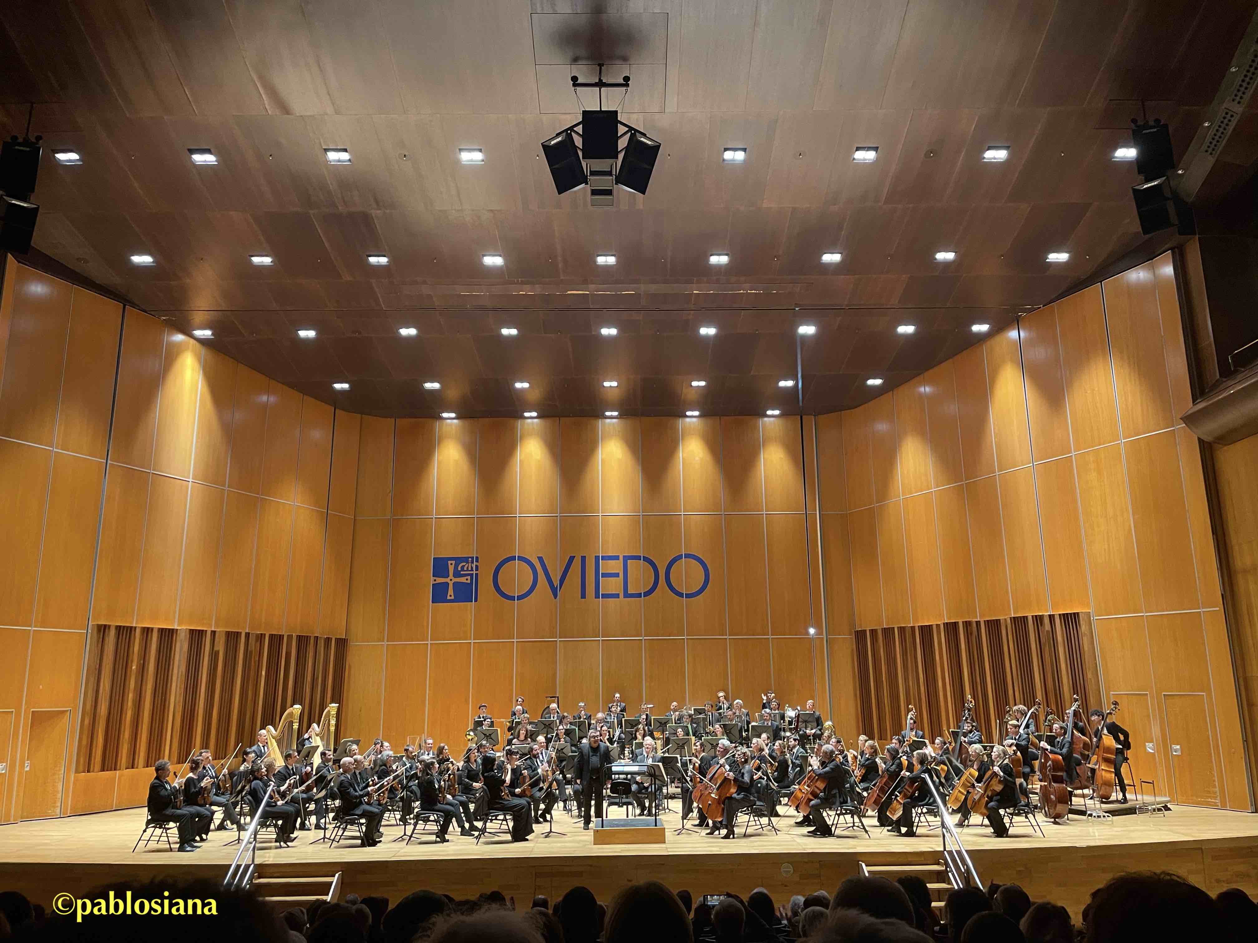 Una nutrida Oviedo Filarmonía en el foso sigue siendo el seguro orquestal de este festival, y se crece con maestros como Néstor Bayona, buen concertador manteniendo unos balances que respetaron siempre las voces, dejando “sacar músculo” en los números instrumentales y con buenos solistas, destacando el flautín y el arpa.