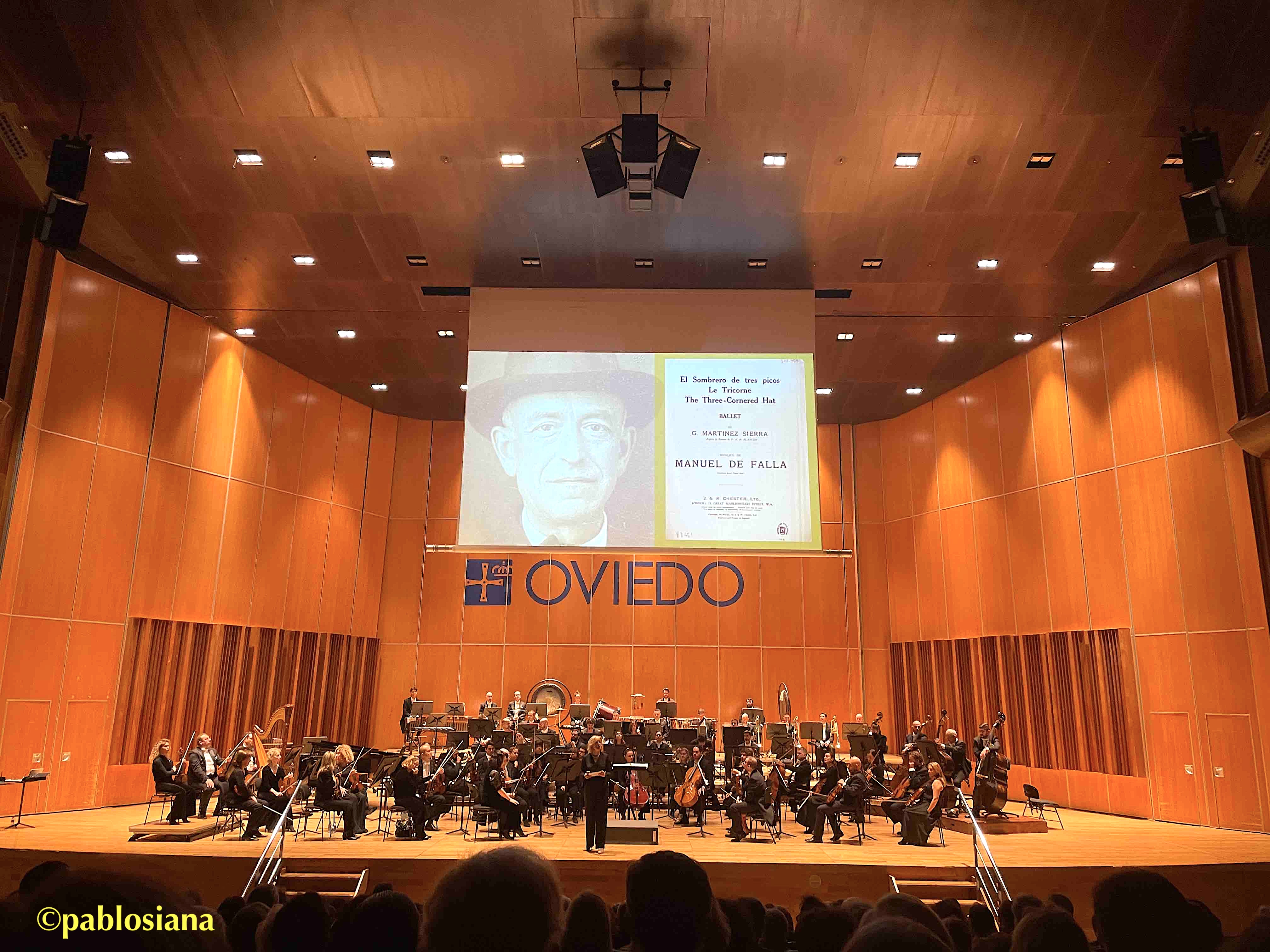 También irían proyectándose las imágenes y textos enriquecedores según iban sonando las dos suites orquestales del gaditano afincado en Granada en las manos de un onubense medio asturiano, descripción de cada uno de los siete números de ambas suites, los motivos, instrumentos, las distintas danzas con sus orígenes e inspiración, morir aprendiendo con evolución antes que revolución. Si hubo algún enigma lo dejo para mis lectores con el simbolismo de la numerología: obras, tricornio y nombres repetidos en este concierto.