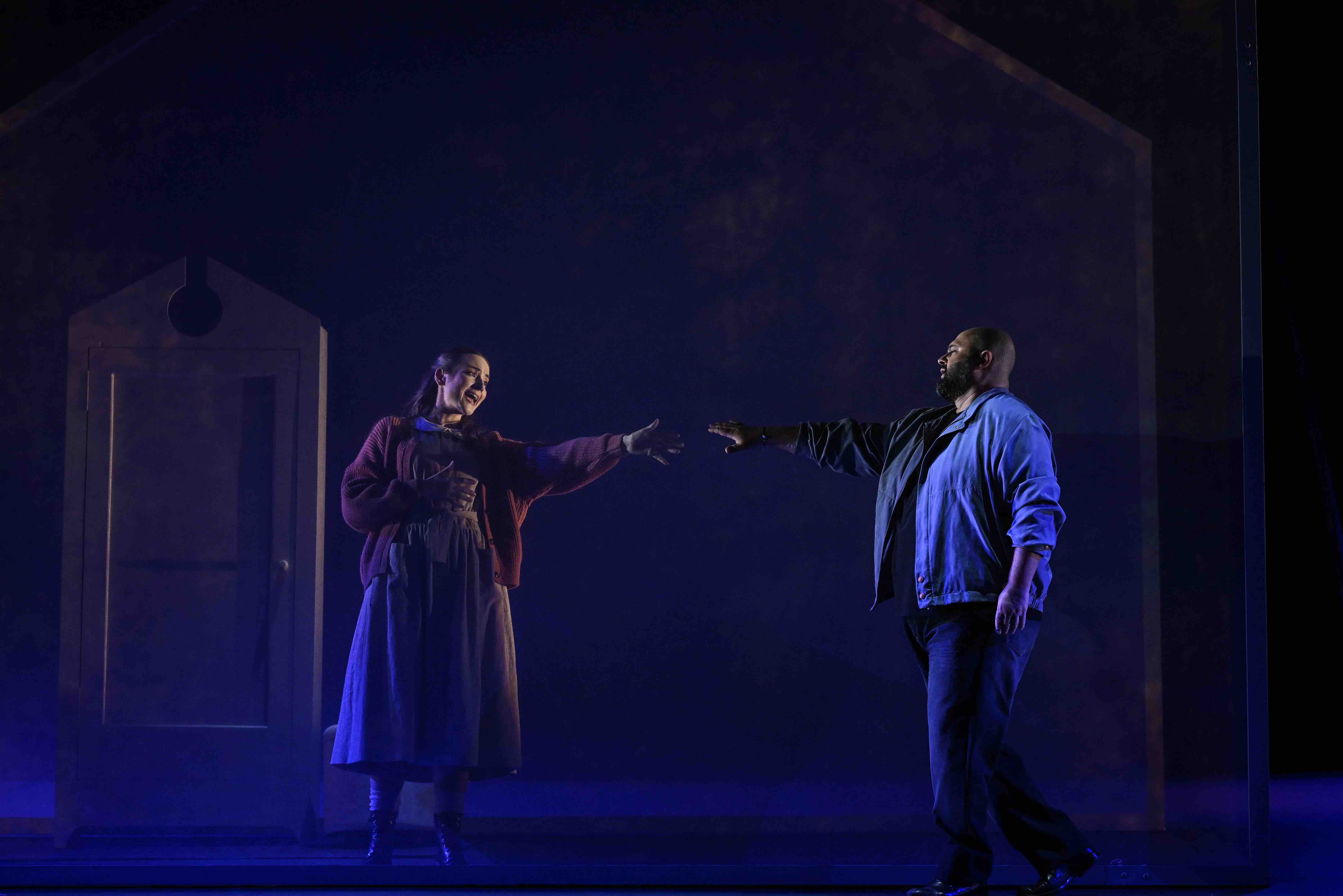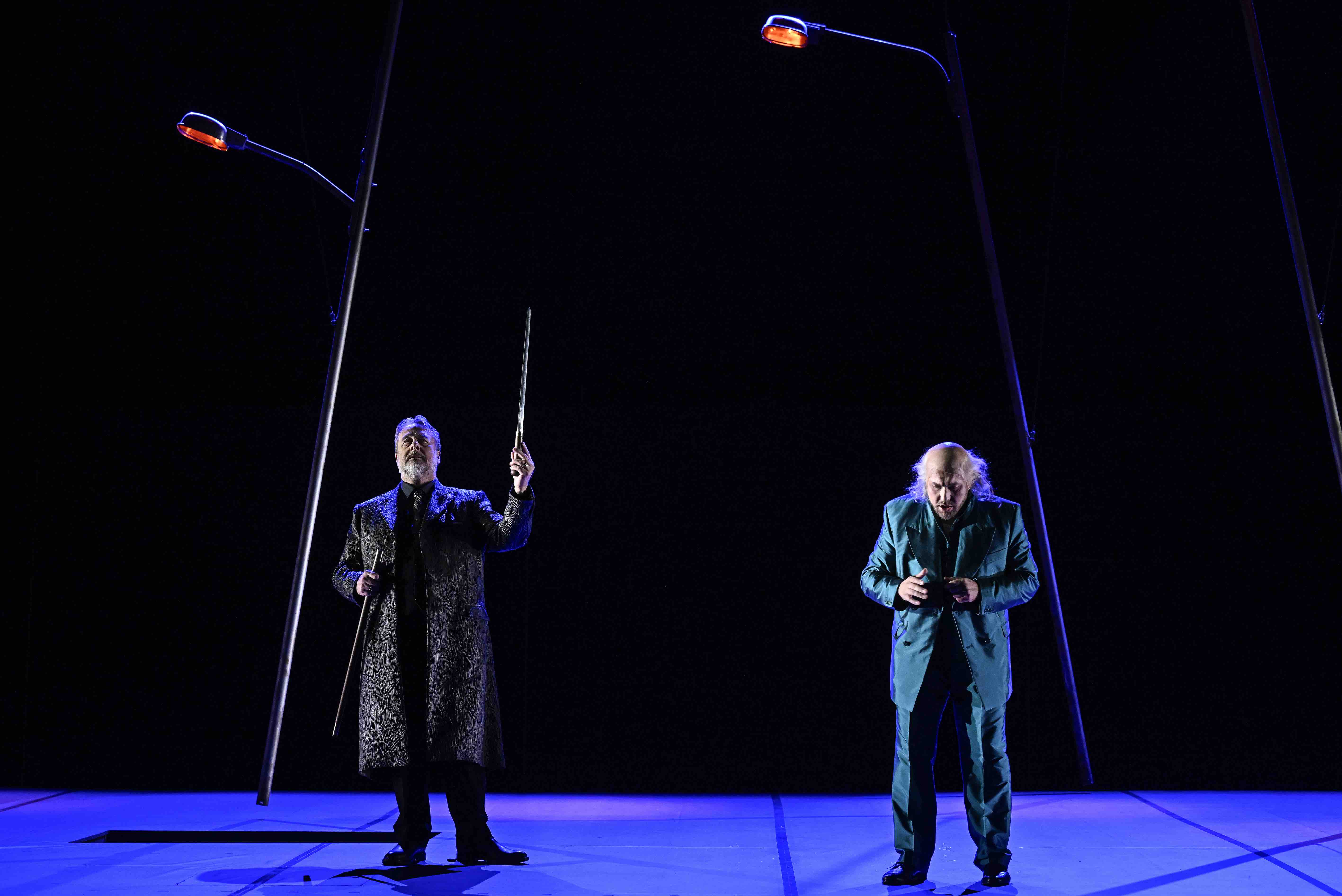 El diseño de Ricardo Sánchez Cuerda con la escena de la ovetense Susana Gómez son un reciclaje, pues no están los presupuestos para dilapidarlos, aunque si se prefiere es un ‘regreso al proyecto iniciado con el «Hamlet» de 2022’, como así lo presenta la asturiana en el libreto de este título, que además titula “Sigue la tormenta” para disipar cualquier duda. Dos facetas (El Duque de Mantua actual y el Príncipe danés de entonces) con “un proyecto conceptual único en el que se muestra la realidad de un hombre que, al querer tomar la justicia por su mano, termina devorado por la máscara que construye para restituir el orden justo”, máscara de la deformidad de la que el protagonista se despoja varias veces sin apenas cojear, y donde el inocente acaba siendo víctima de sus intentos de reparación de los desajustes sociales, por otra parte muy actual siglo y medio después del estreno en La Fenice veneciana.