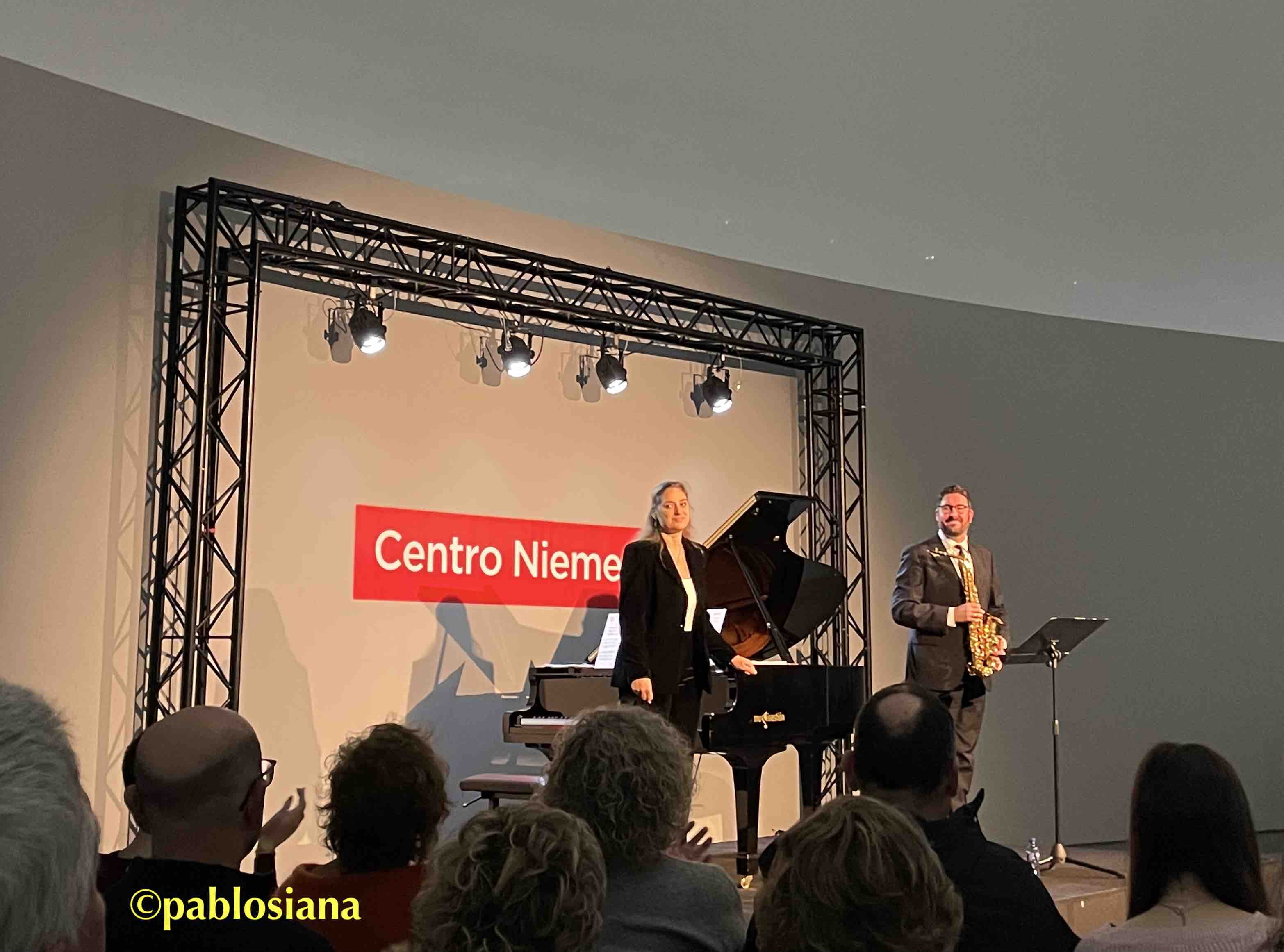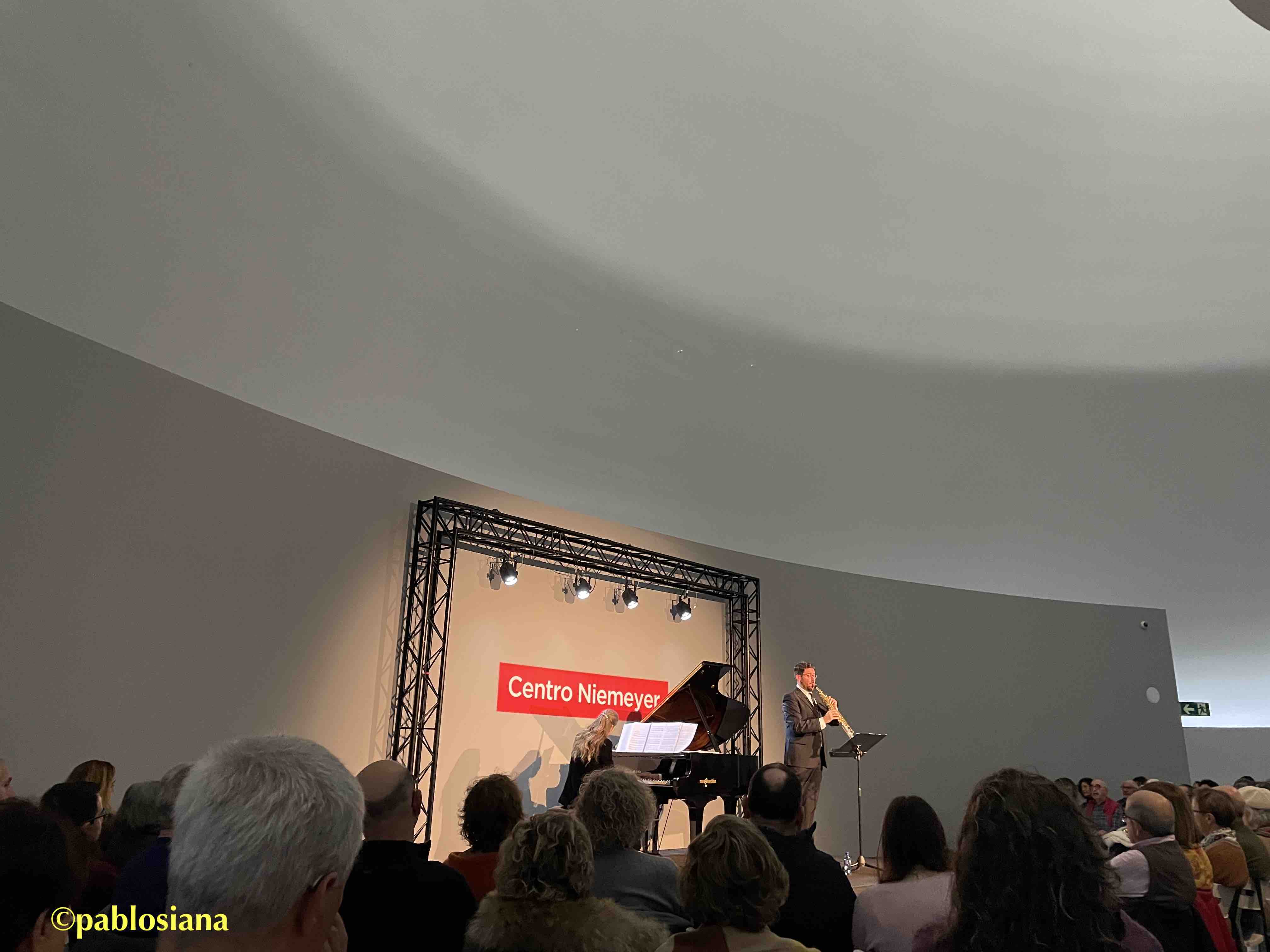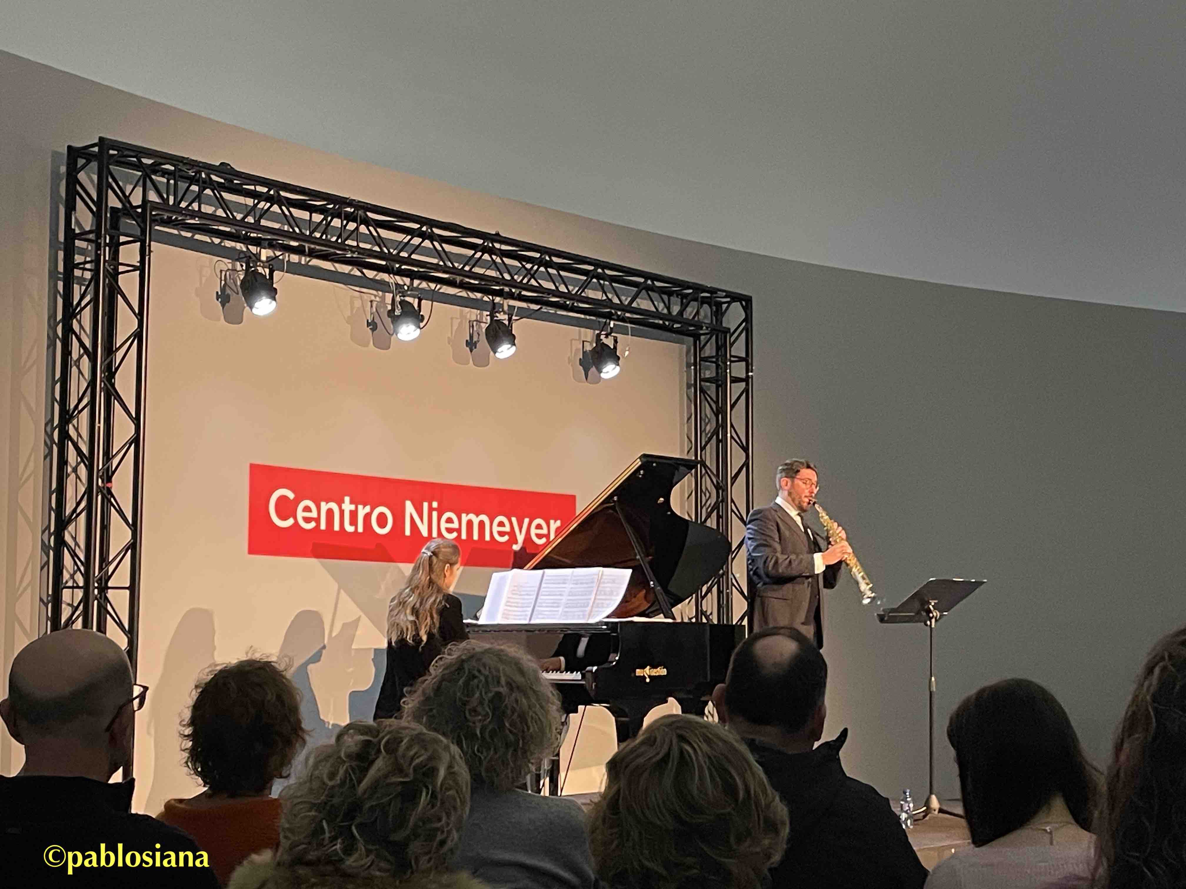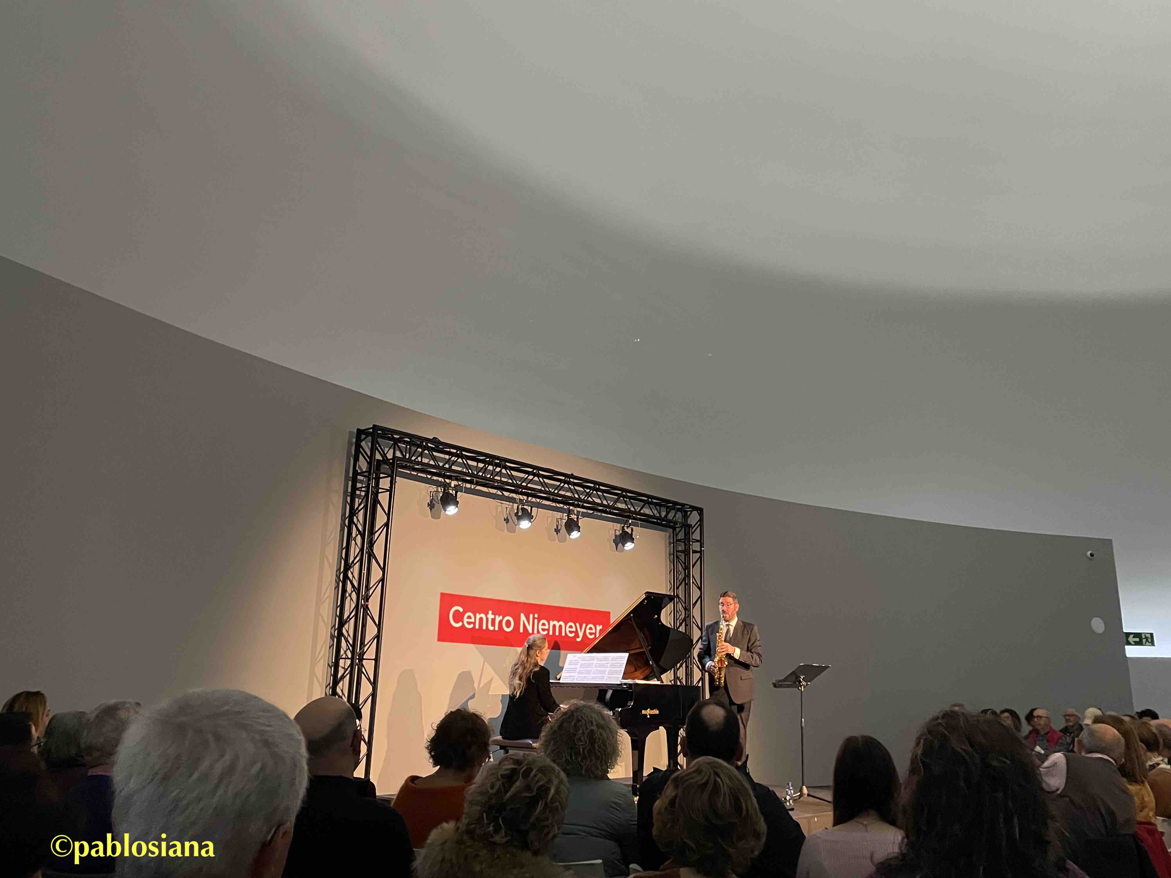 Para celebrar al llamado pintor de la luz, Joaquín Sorolla (Valencia, 1863 – Madrid, 1923), llegaba a Avilés —tras actuar el día anterior en Veguellina de Órbigo dentro del ciclo Passionato— mi querido Dúo Saxperience, formado por el maestro de Totalán Antonio Cánovas, al saxo alto y soprano, y la pianista leonesa Elena Miguélez. Ambos, muy vinculados durante años a Asturias como catedráticos e el CONSMUPA y especialmente a Mieres (él dirigiendo la AMAM y la Banda Sinfónica del Ateneo Musical, ella al frente de la Coral Cantares), ejercen en la actualidad sus carreras docentes en Murcia y continúan siendo una pareja artística muy querida, algo que se reflejó en la buena entrada registrada en el Niemeyer de la Villa del Adelantado.