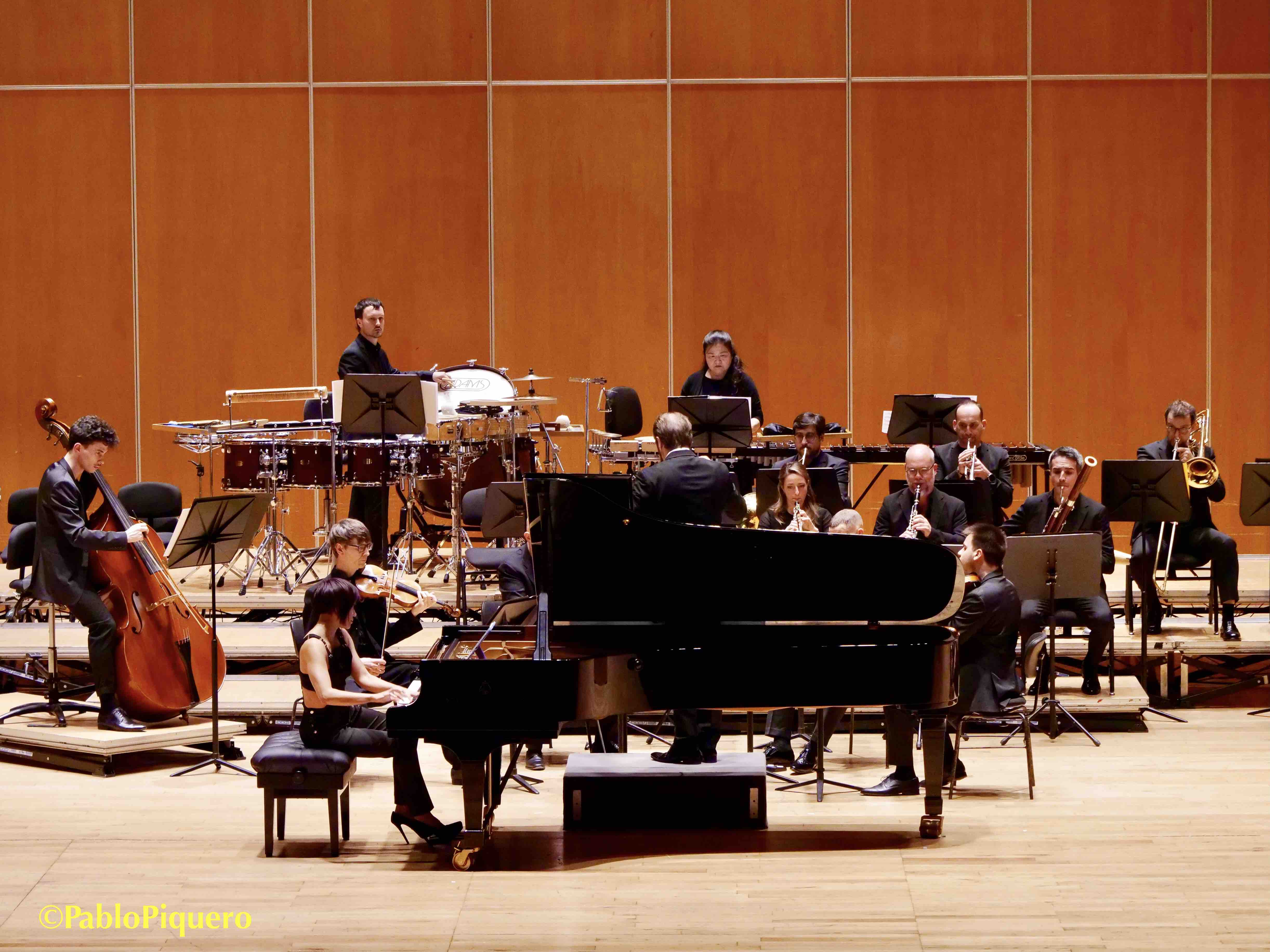 El Concierto para piano y orquesta, escrito entre 1985 y 1988, supone en palabras del propio Ligeti «un cambio estilístico radical en mi escritura» como bien recoge en las notas al programa mi admirado musicógrafo Luis Suñén, donde el ritmo y las texturas son verdaderos protagonistas, citando de nuevo a mi amigo madrileño, afincado en tierras gallegas: «tomando el concepto de la fotografía, «el grano», según sea el deseo de mayor o menor veladura o densidad de su aspecto, evocando la relación entre píxeles e imágenes en una pantalla de televisión: la ilusión de movimiento es creada por elementos inmóviles». No quiero dejar de reflejar el impecable trabajo de los dos percusionistas que llevan el verdadero peso de este concierto tan sacrificado para ellos (pocas veces lo tocan), aunando color con un piano no siempre protagonista, al que Wang (en su estreno con esta obra) le intentó dotar de mayor presencia pero el director francés Fabien Gabel no «enfocó», más preocupado en no perder la pulsación ni el empuje rítmico que eché de menos en Stravinsky.