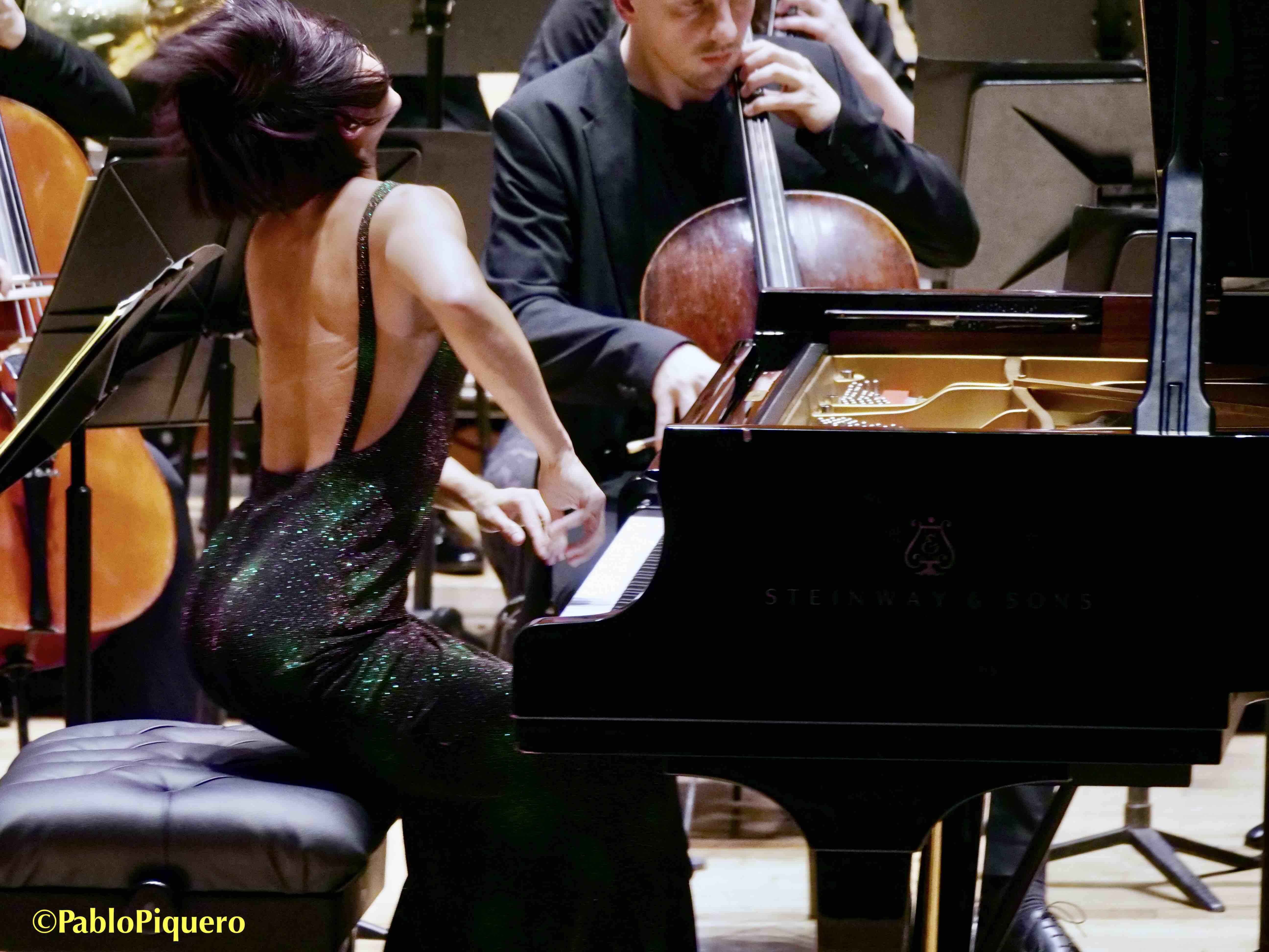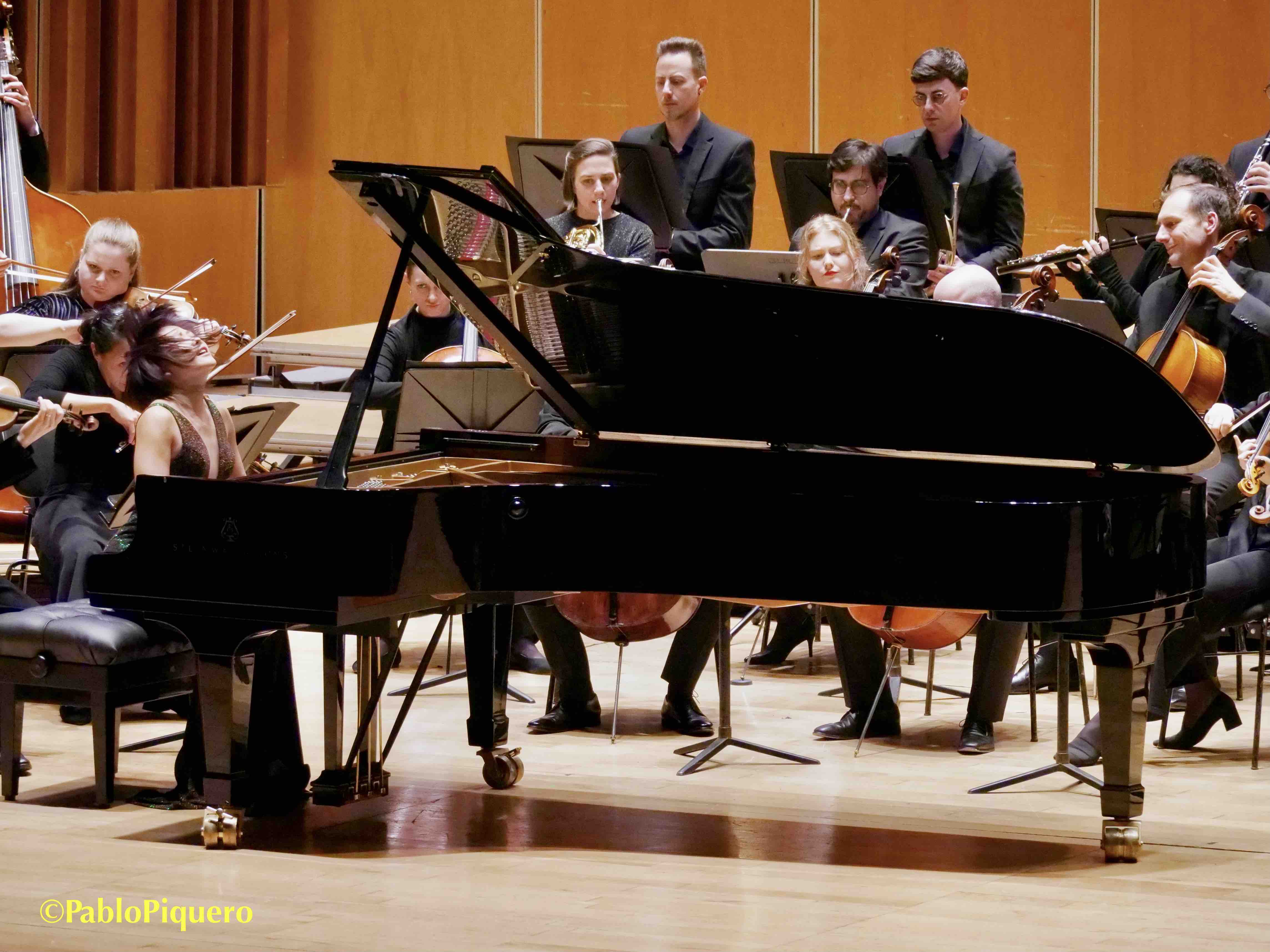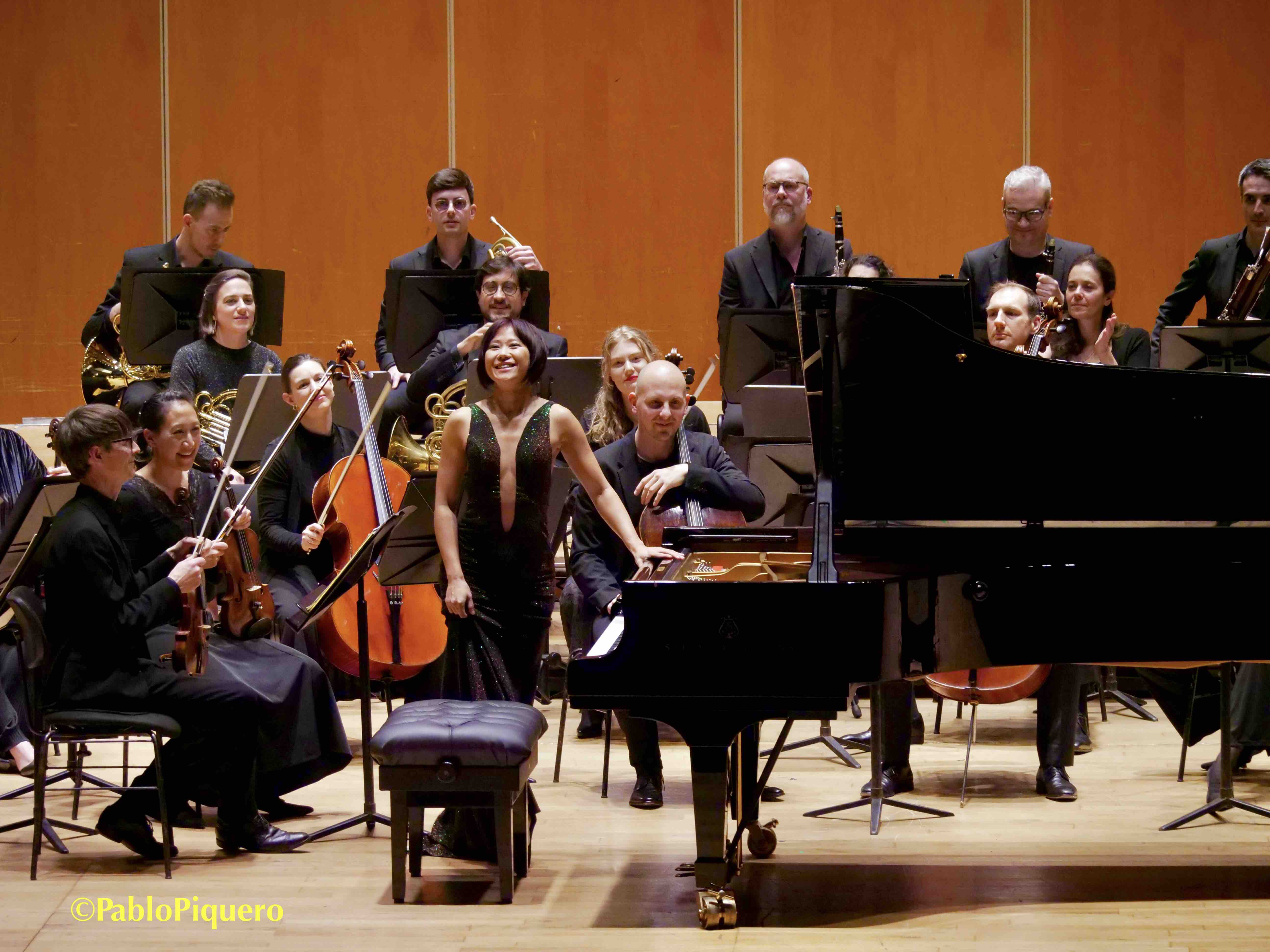 Más profundo resultó el Romanze: Larghetto, sin prisas, paladeando piano y orquesta, diálogos bien medidos con un fagot impecable, sonido cristalino del piano y una orquesta «ideal» para este Chopin atemporal. Y de nuevo marcando el aire preciso para el Rondo: Vivace final, el torbellino chino ahora jugando con el tempo, los rubatos siempre intrínsecos al polaco, las agilidades y fraseos de todos, la intención interpretativa bien entendida demostrando cuánta música atesora la pianista china de un virtuosismo plegado a la expresión pura.