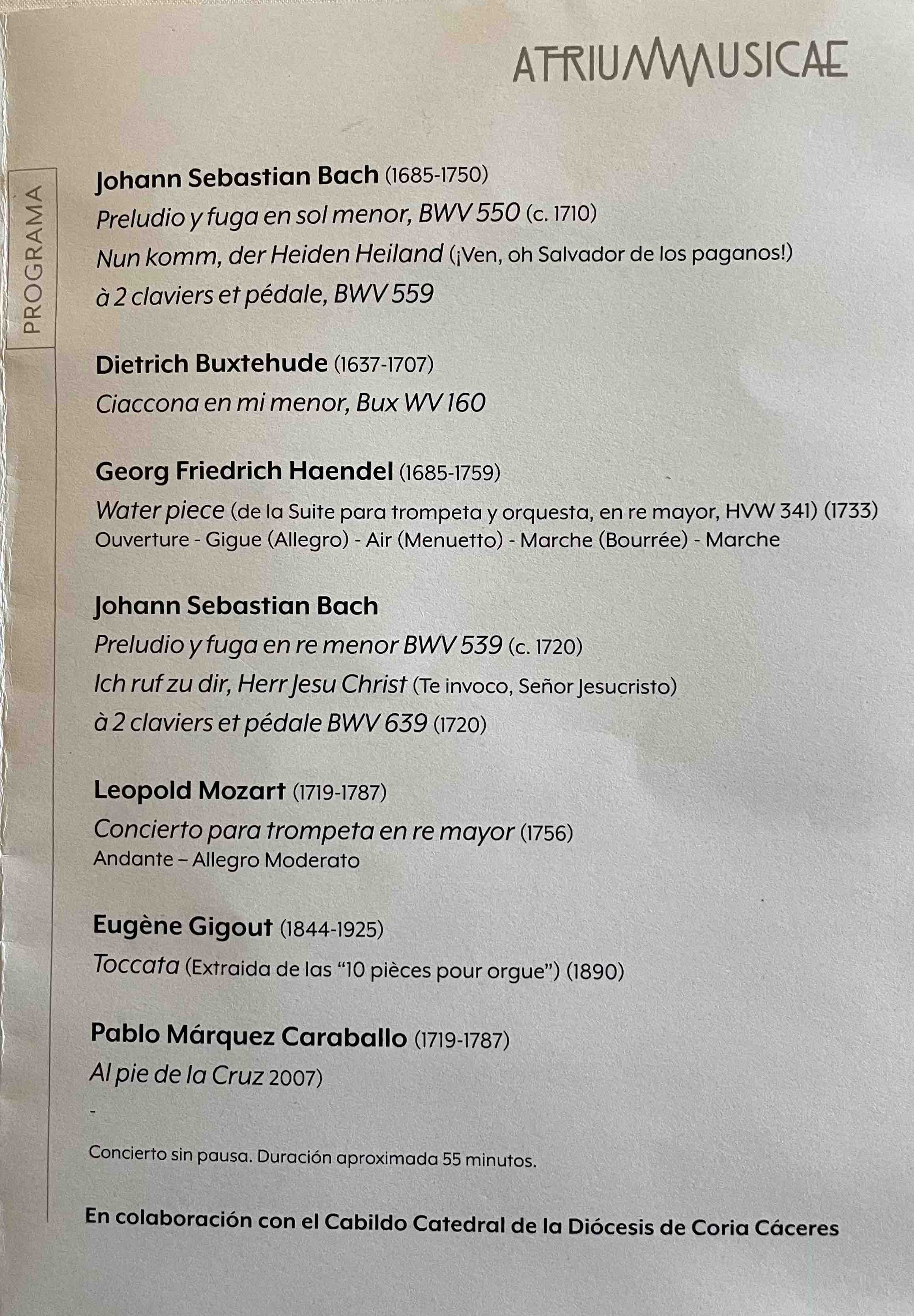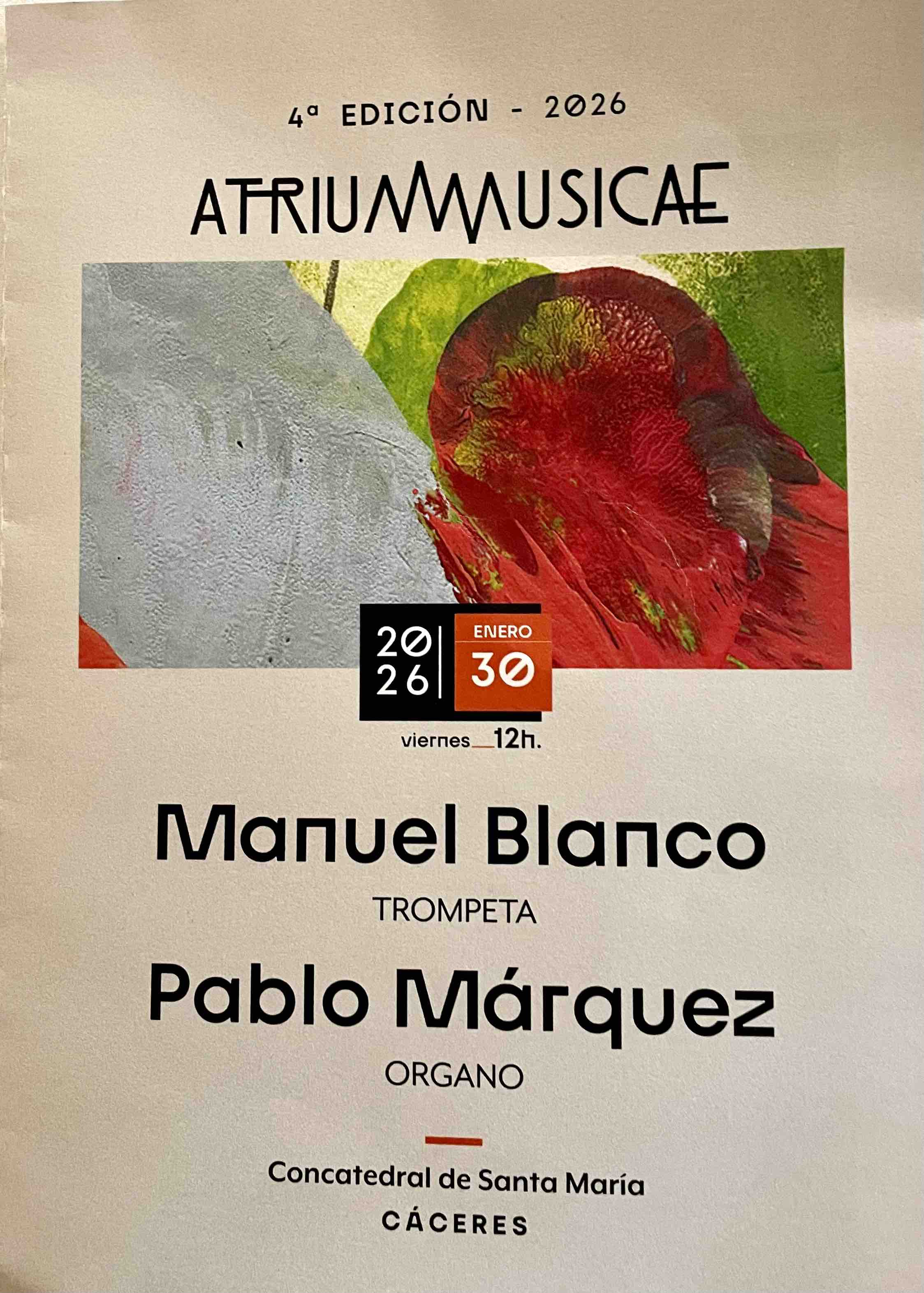 Sábado 31 de enero, día 4 del Festival Atrium Musicae. Concatedral de Santa María, Cáceres, 12:00 horas: El León de Oro (director: Marco Antonio Gª de Paz), Schola Antiqua (director: Juan Carlos Asensio): “Un Réquiem para la eternidad”. Victoria: Officum defunctorum.