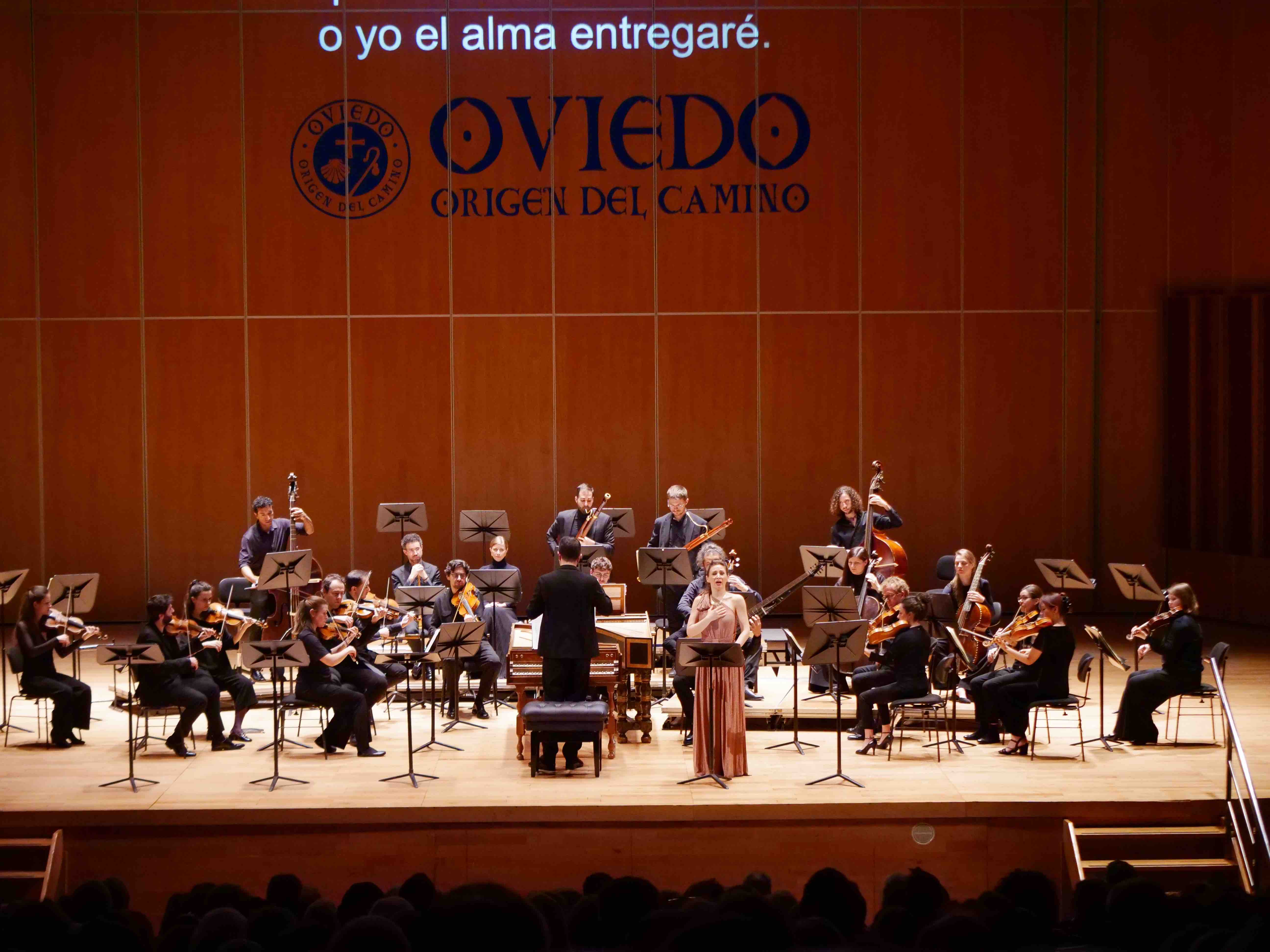 La pausa se hizo con toda la intención en la escena VIII del segundo acto tras el aria de Cleopatra «Se pietà di me non senti» donde Sabine Devieilhe lució la magia de su voz desde su primera aparición. Muy expresiva en un papel complicado que reúne estados de ánimo cambiantes a lo largo de la obra, tras el amoroso «V’adoro pupille» de la escena segunda en el acto central, agilidades hasta un agudo increíble en pianissimo, fuerza junto al dúo de los fagotes (Álvarez y Bernat Gili Díaz) verdaderamente primoroso en conjunto, poniendo el auditorio patas arriba tras casi dos horas antes de salir a estirar las piernas porque aún quedaba la segunda parte, pese a que algunos pensaron se acababa ya que las diez de la noche es la hora habitual de finalizar en el auditorio carbayón y no se leen el programa de mano (ni parece conozcan la historia de la pareja más cinematográfica).