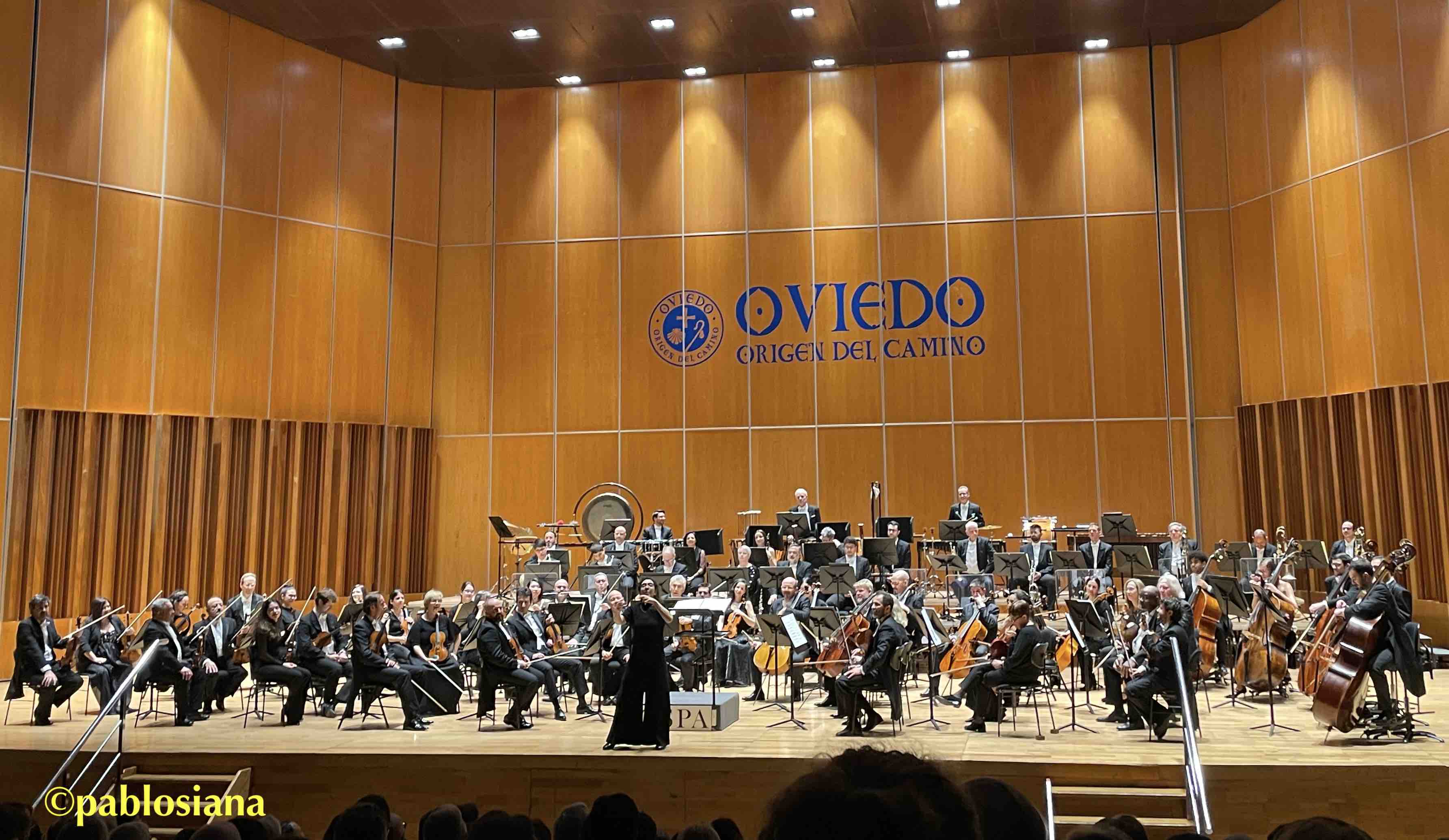 Una semana intensa en el auditorio ovetense y llegábamos a la mitad de los conciertos de abono de la OSPA con los ya habituales encuentros previos 45 minutos antes, moderados por Fernando Zorita en la Sala de conferencias nº 1 (del tercer piso), que paulatinamente van atrayendo -al igual que a los conciertos- más público del habitual, esperando se mantenga el incremento de aficionados. Personalmente no me los suelo perder porque son una forma de conocer de primera mano las obras que escucharemos a continuación con las aportaciones de los invitados, esta vez con la expresiva y mejor comunicadora directora ítalo-turca Nil Venditti (1994) invitada de nuevo por la orquesta asturiana, siendo su tercera visita a este mismo auditorio, a la que recordaremos precisamente por su ímpetu y forma de transmitir energía desde en un italiano comprensible siempre ayudado de las manos, y que volvería a lucir para todos los asistentes antes de dirigir cada una de las obras de la primera parte, más un dominio de cada obra que además contagia seguridad a una OSPA cada vez más madura, compacta, brillante por momentos, creciendo en cada abono en una temporada de asentamiento (a la espera de un concertino titular).